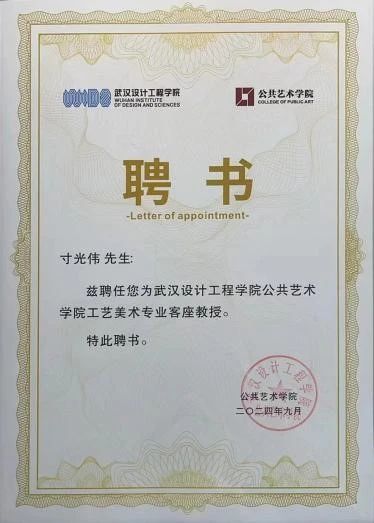 乡村的建设发展、非遗传承的一路走来、面对机遇和挑战时做出的选择从寸光伟老师口中娓娓道来,让现场师生更为立体真实地对鹤庆银饰非遗传承发展有了极为深刻的认识。讲座活动结束时,yl6809永利集团陆超副院长为寸光伟先生颁发专业客座教授聘书。