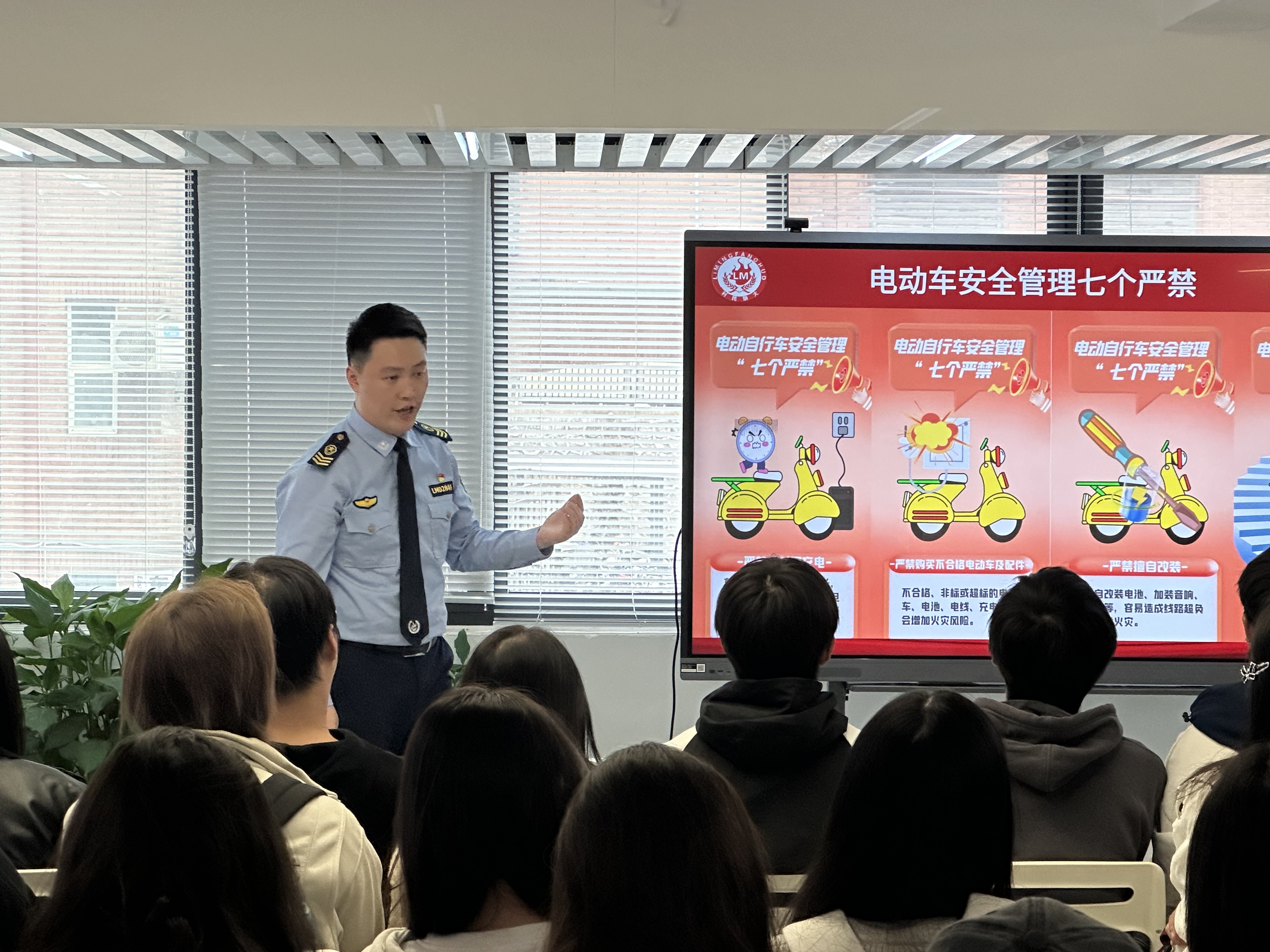 程诚教官首先强调了消防安全的重要性,并详细介绍了“四个能力”建设,包括检查消除火灾隐患的能力、组织扑救初起火灾的能力、组织人员疏散逃生的能力和消防宣传教育培训的能力。在讲座中,教官特别提到了电动自行车的安全使用和管理,强调了“七个严禁”,以预防火灾事故的发生。针对学生宿舍常见的火灾隐患,程诚教官提出了具体的防范对策,提醒学生要合理用电,及时关闭电源开关,严禁使用大功率电器和乱扔烟头等行为。
