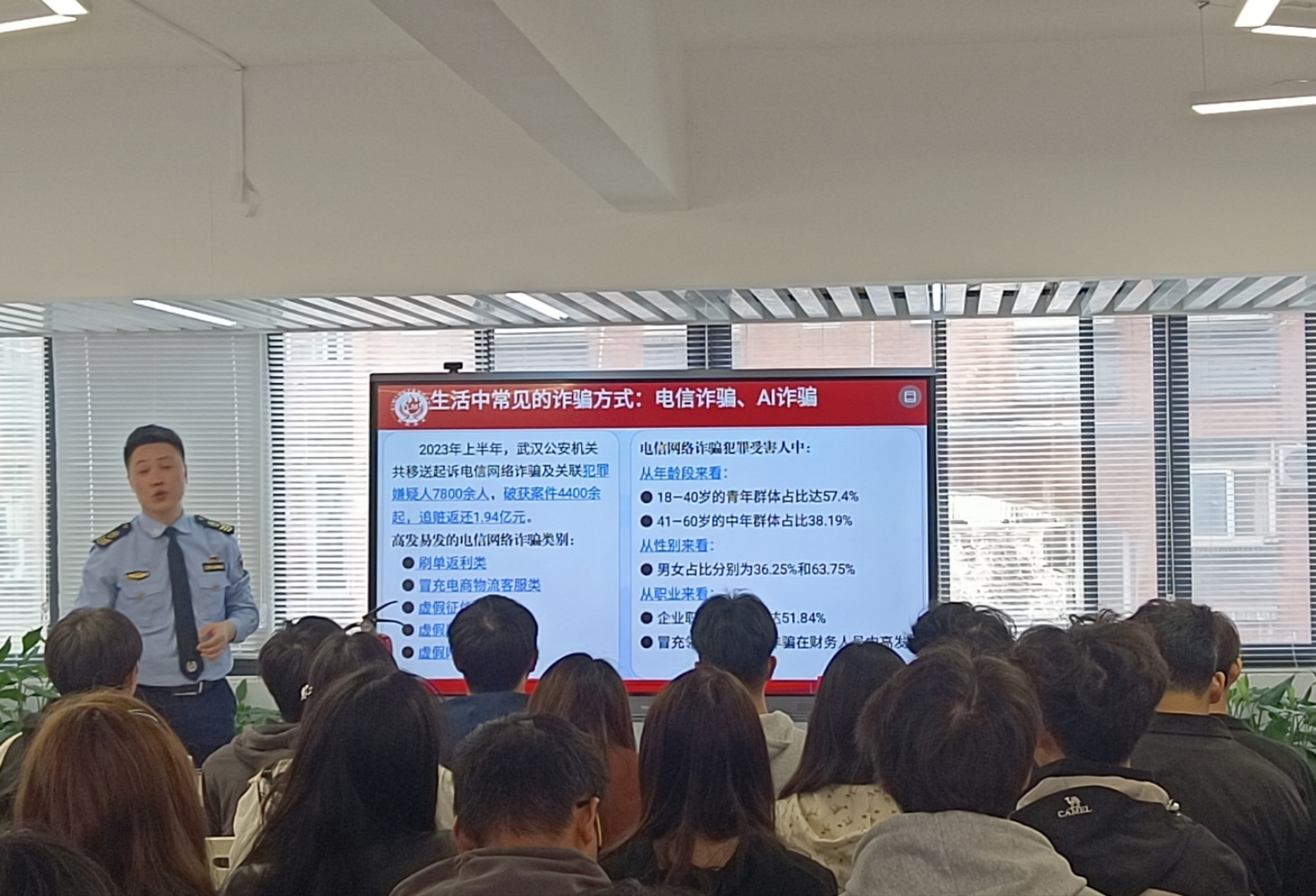 在防范新型诈骗的部分,程诚教官通过分享真实案例,揭示了多种新型诈骗手段,包括但不限于电信诈骗、网络钓鱼、虚假投资和情感诈骗等。他特别提醒学生,诈骗分子可能会利用AI技术进行“深度伪造”,制造出以假乱真的视频和音频,以获取受害者的信任。程诚教官强调,无论诈骗手段如何变化,提高自我保护意识、不轻信陌生人、不随意透露个人信息是防范诈骗的关键。他还建议学生下载国家反诈中心APP,并启用相关预警功能,为自己的网络安全增加一道防线。此外,他还教授了一些实用的防范技巧,比如设置与家人之间的“安全暗号”,以应对紧急情况下的身份验证问题。