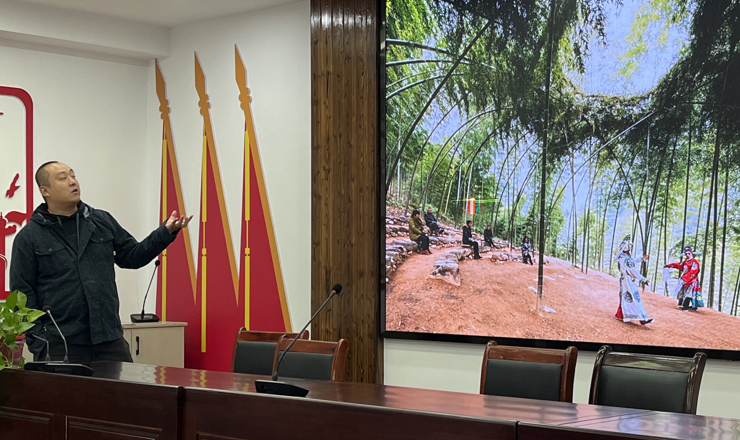 在地性作为《公共艺术策划》课程中的重难知识点,为了同学们能将课程中的理论知识在实践课堂中进行有效的运用。课程邀请了来自北京的建筑师李昂,结合实践地黄梅县香炉山村的地域特点,为同学们展开了一场以“乡土材料及其应用”为主题的讲座。