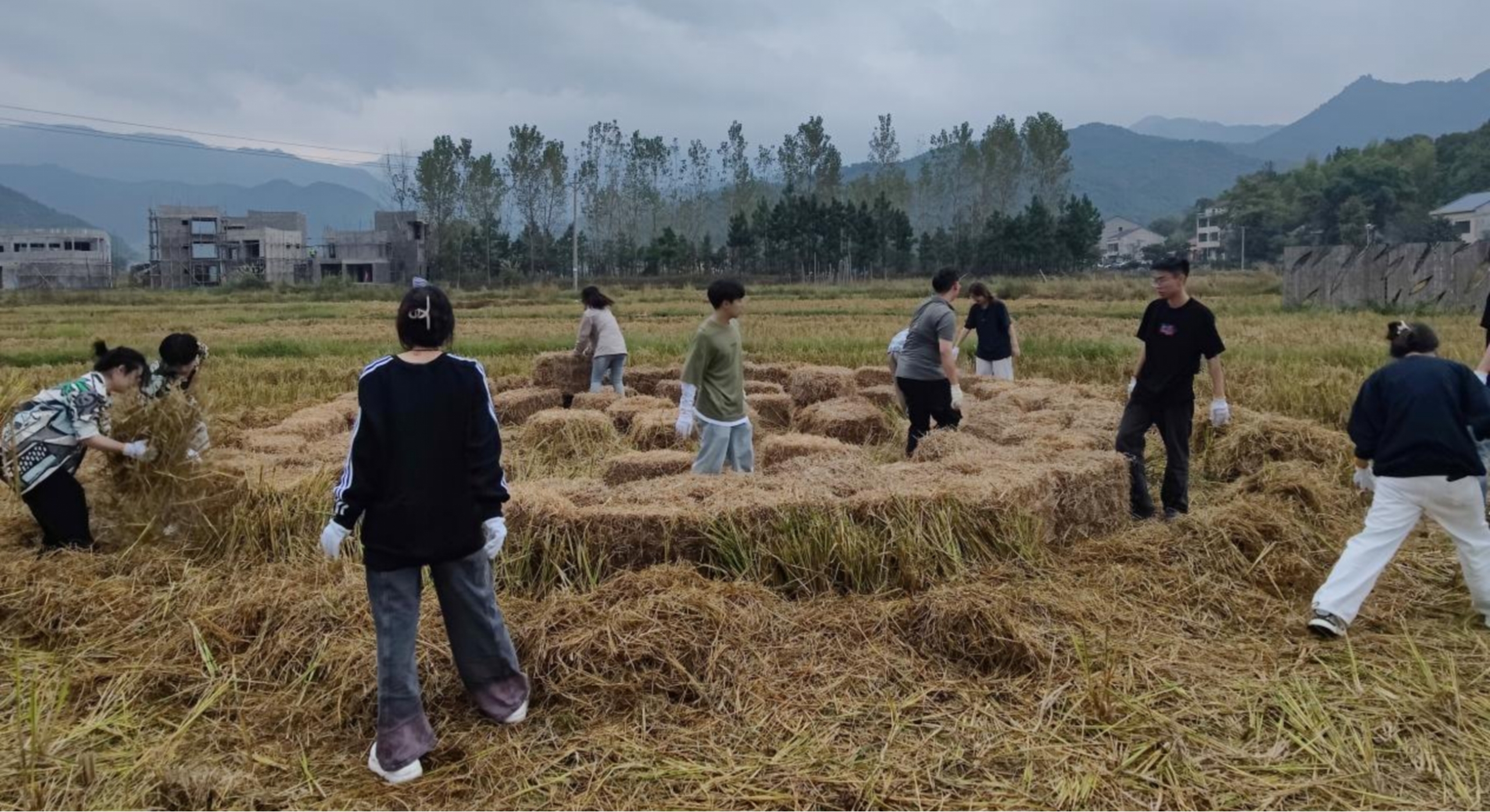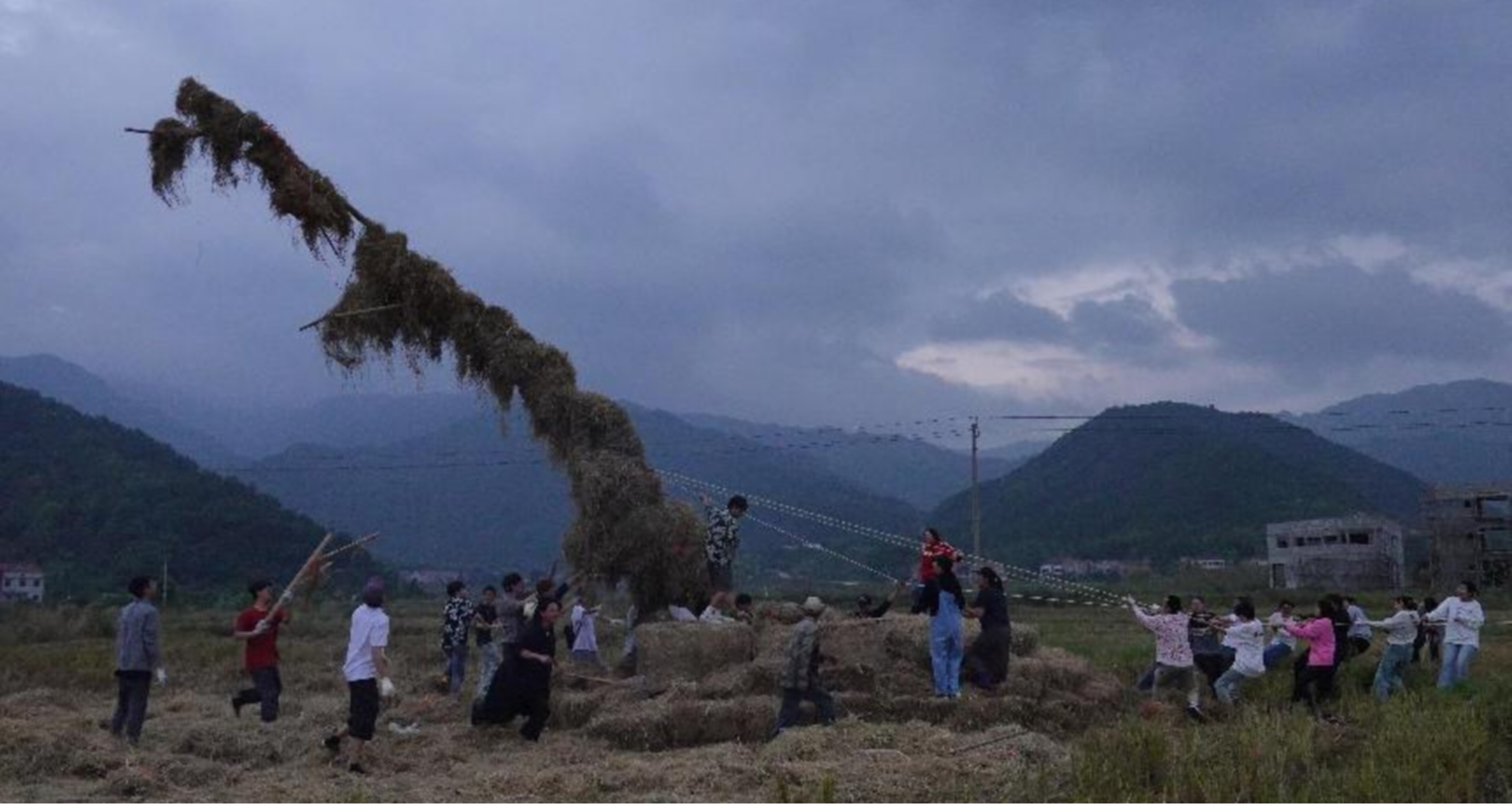 在同学们不懈的努力,老师、工匠以及村民们的共同协作下,大家共同完成了由竹与稻草创作的造型,并将其矗立在了香炉山村的田野中。