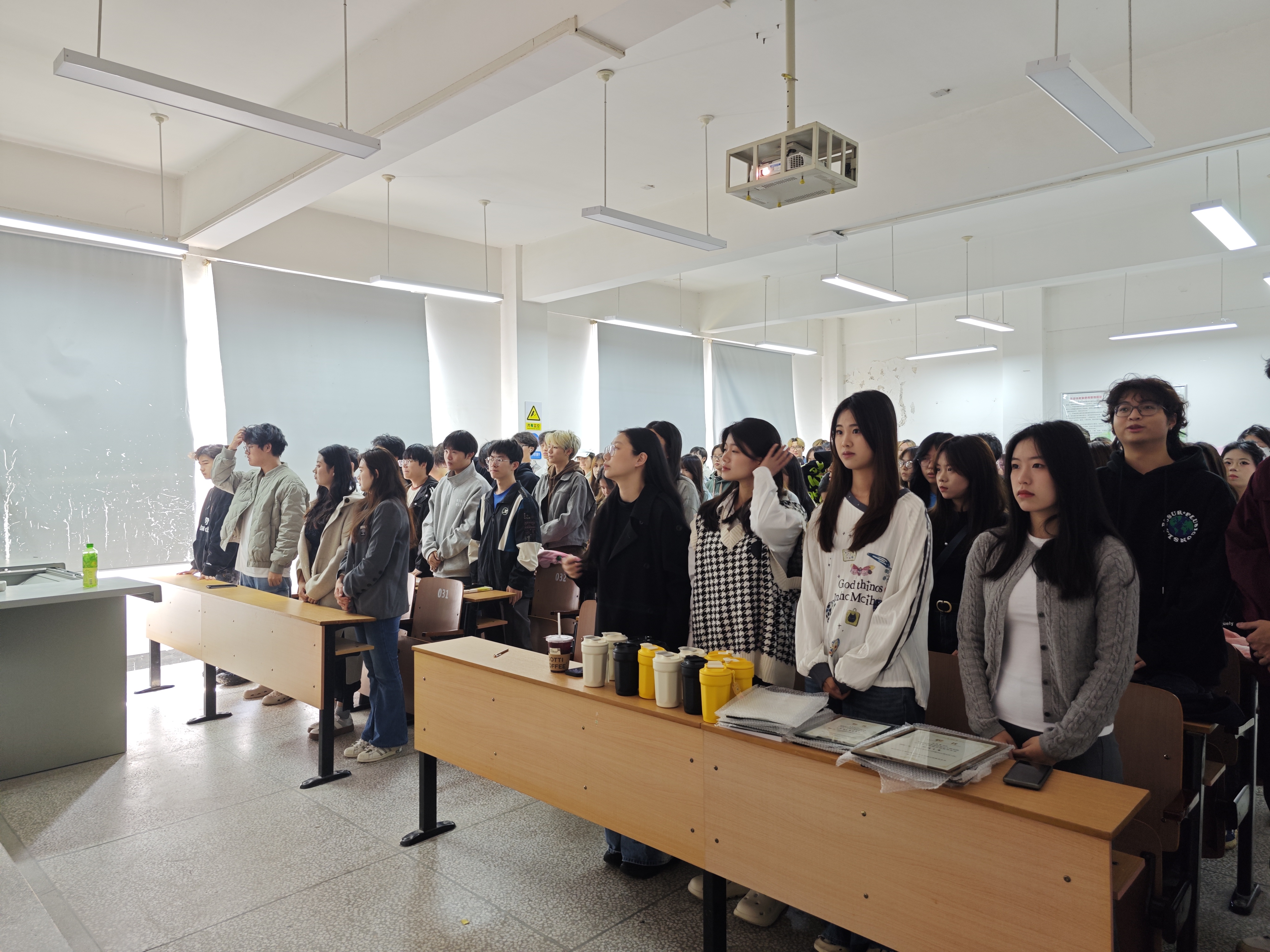 会议第一项,全体奏唱国歌。yl6809永利集团分团委学生会代表换届大会以唱国歌开场,随后正式揭开序幕。