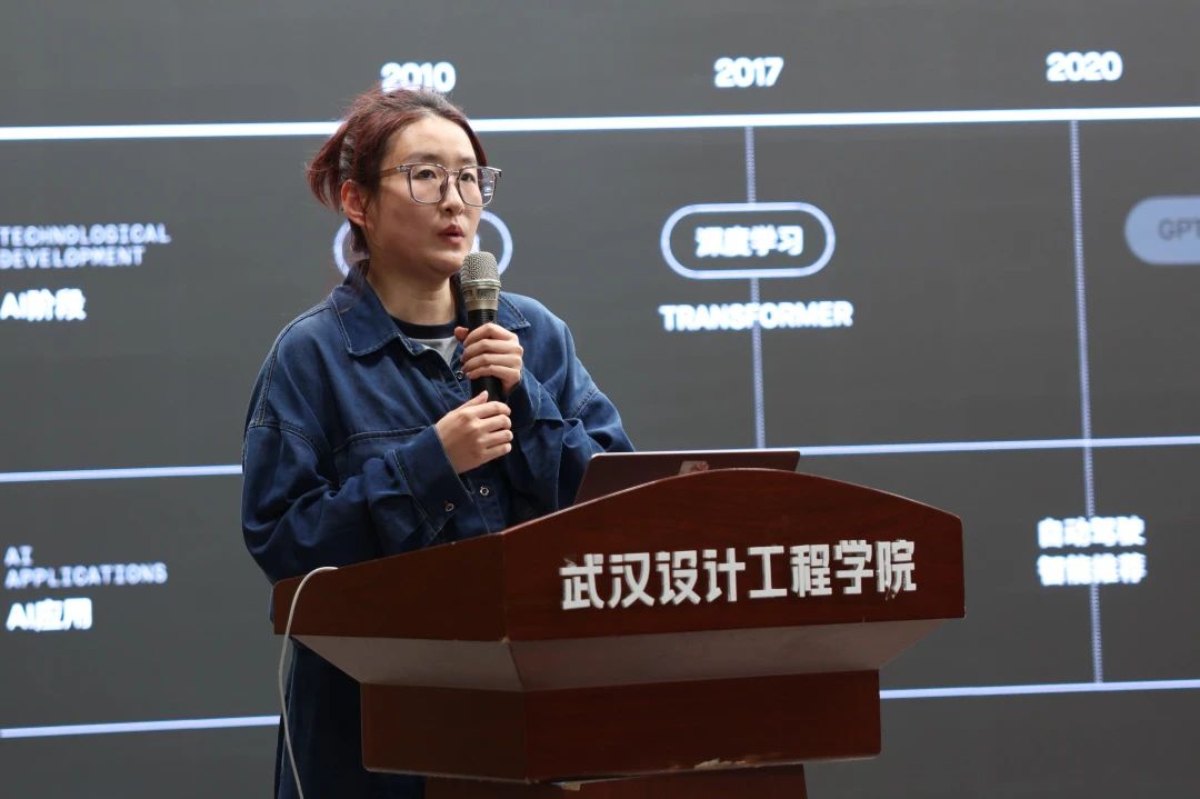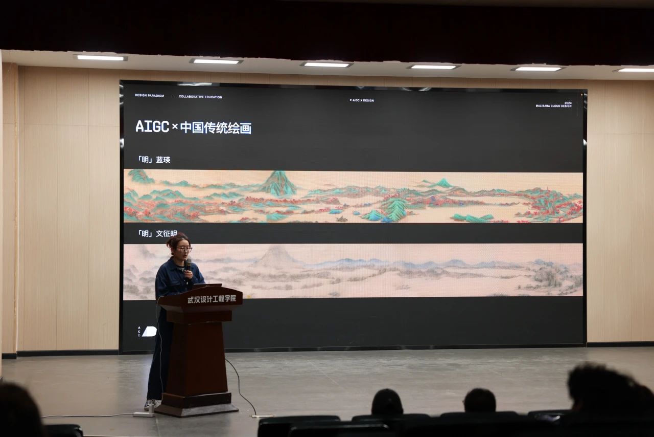 胡峻专家以“AIGC设计新范式”为主题,讲述了阿里云在AI领域的多年探索经验。她展示了阿里云设计师们如何利用新平台、新工具,在云计算业务中开展AIGC的创作与实践。她的分享让同学们看到了AIGC在设计领域的巨大潜力和无限可能。