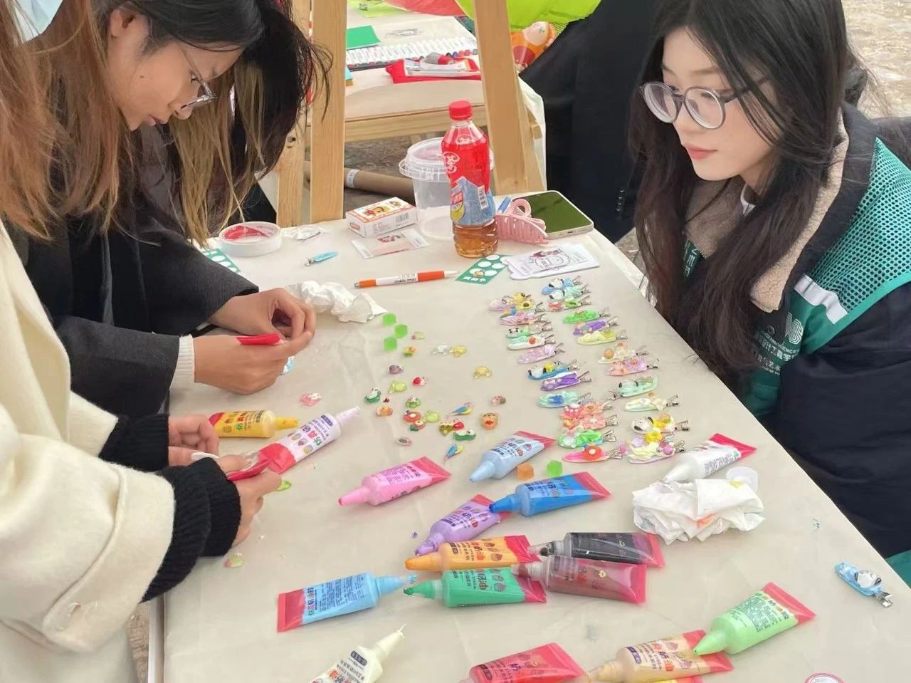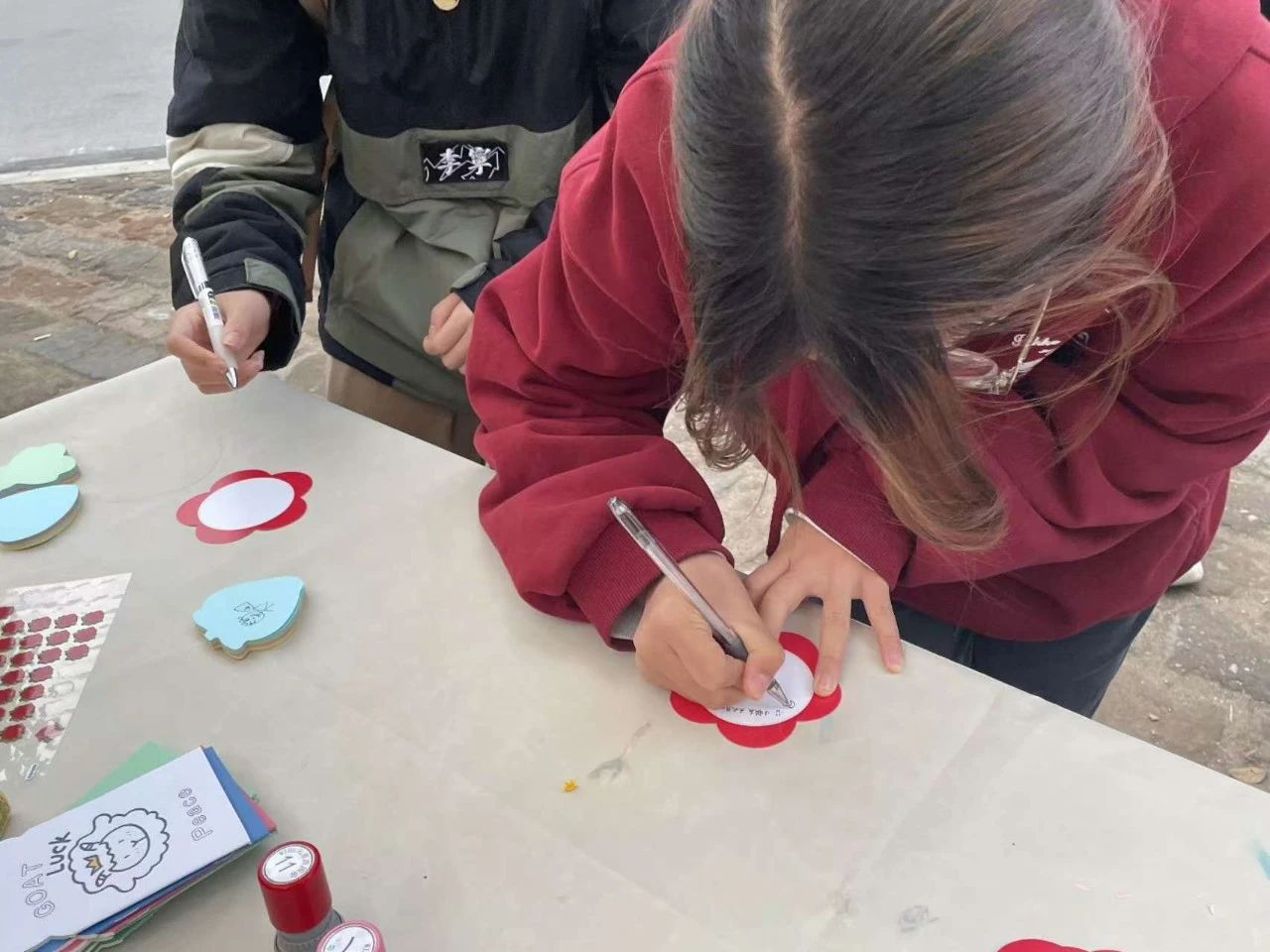 在活动中,同学们不断发挥自身想象力与创造力,通过使用不同的材料,DIY了可爱的发卡,或是写上了对志愿者与小朋友们真诚的期望与祝福。