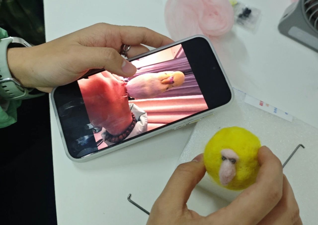在这次活动中,同学们在专业老师的指导下,全神贯注地投入到羊毛毡的制作中。他们用手中的针和羊毛,细心地塑造出自己的作品。经过90分钟的专注和努力,同学们的作品丰富多彩,有的戳出了栩栩如生的小鸟形状,有的创作出了可爱的小老鼠形象,还有的同学戳出了憨态可掬的企鹅状羊毛毡等等。