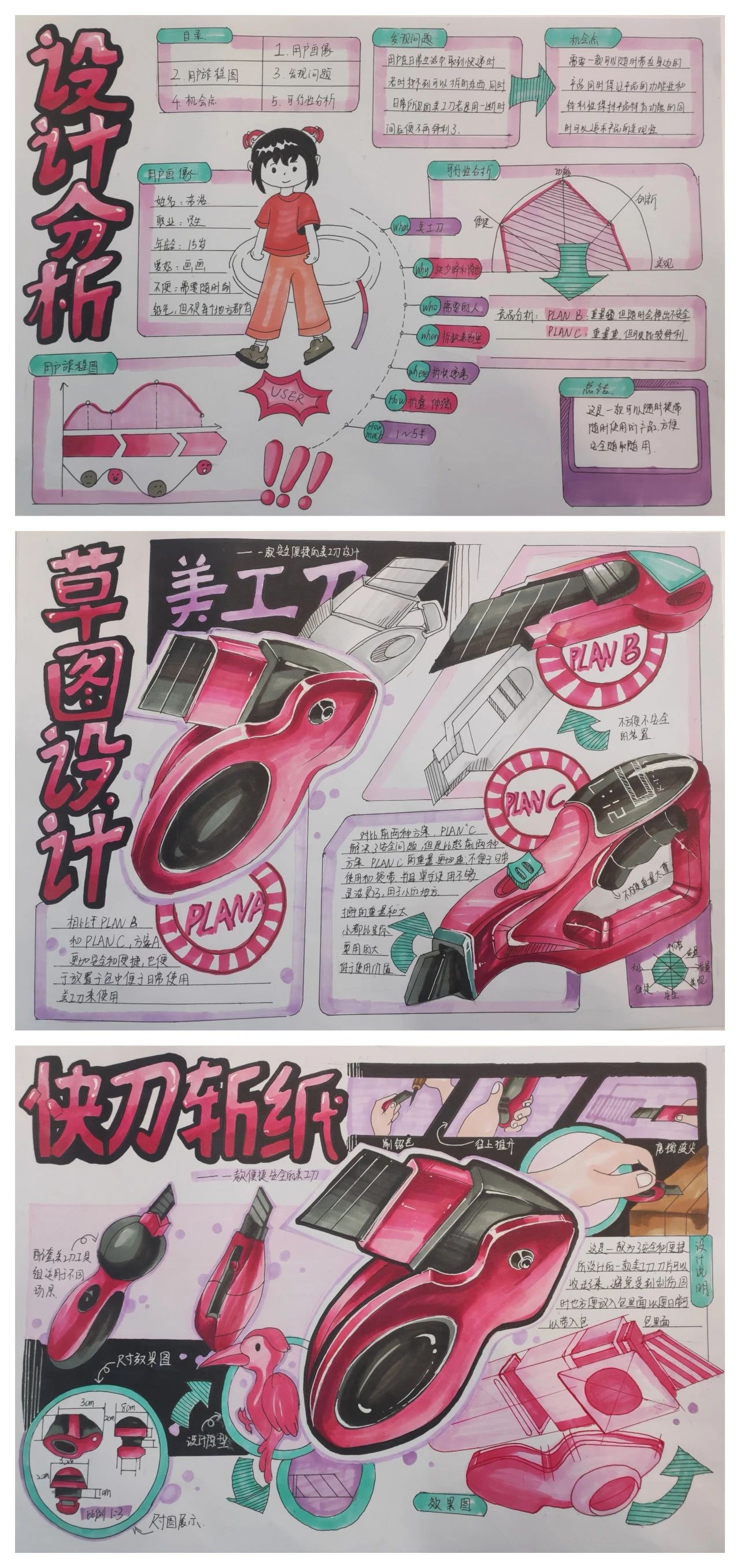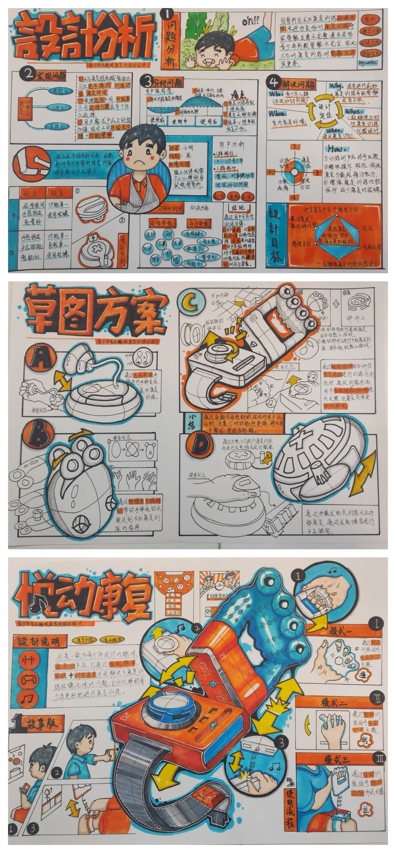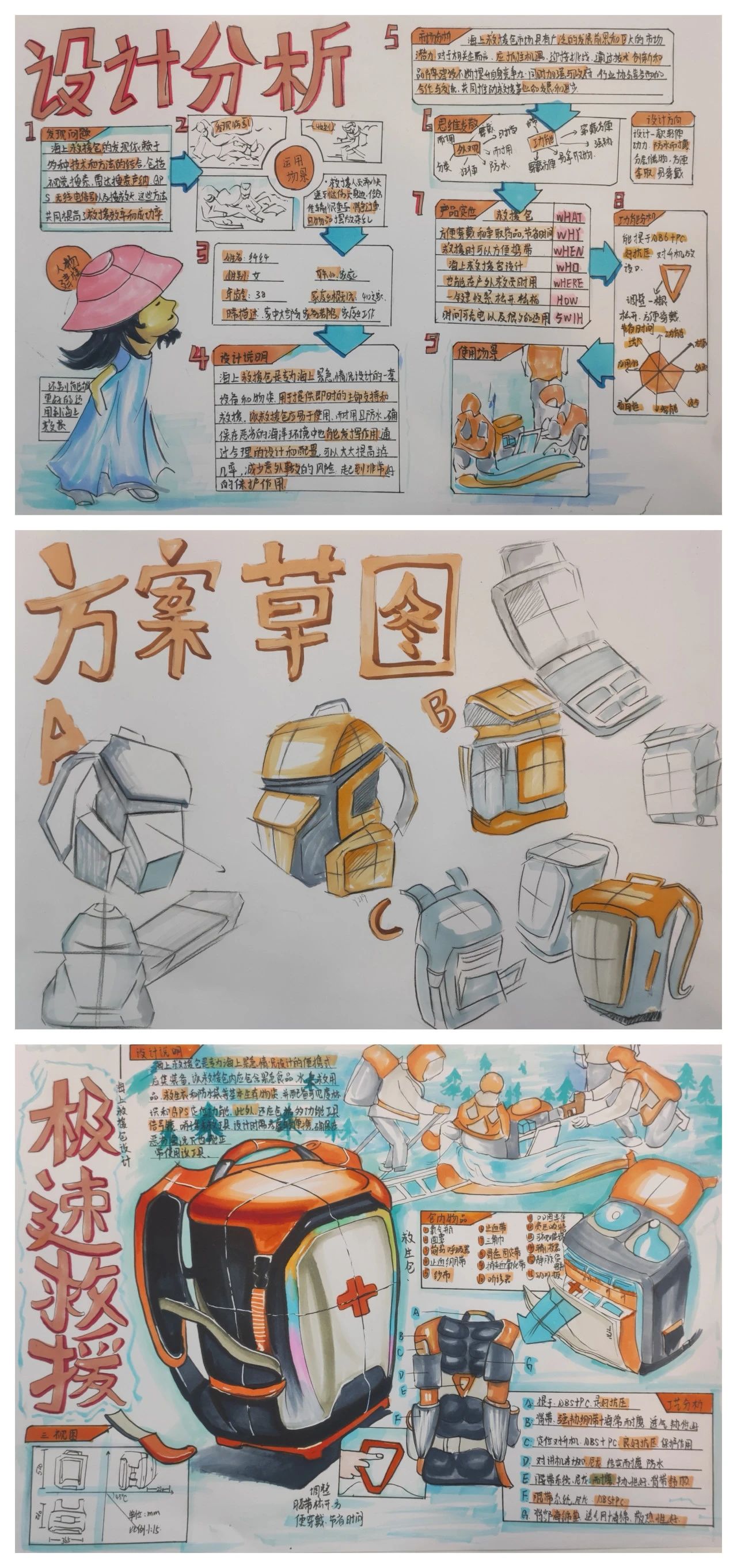 《产品快题设计》是产品设计专业的核心课程。学生根据教学要求注重创意与实践的结合。在设计过程中首先要明确主题,收集资料进行市场调研分析。然后通过草图快速展现创意构思,注重造型、功能及结构的创新。再进行深化设计,绘制主、辅效果图,强调细节表现,确保设计理念的准确传达。并结合使用情境,模拟产品与用户环境的交互,提升设计的实用性和用户体验。最后撰写设计说明,清晰阐述设计理念、差异化及用户体验,确保内容精炼、准确。整个教学过程强调逻辑性与艺术性并重,培养学生的综合设计能力。