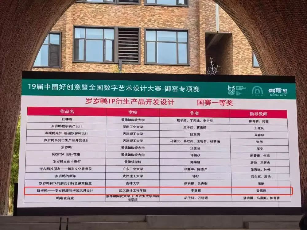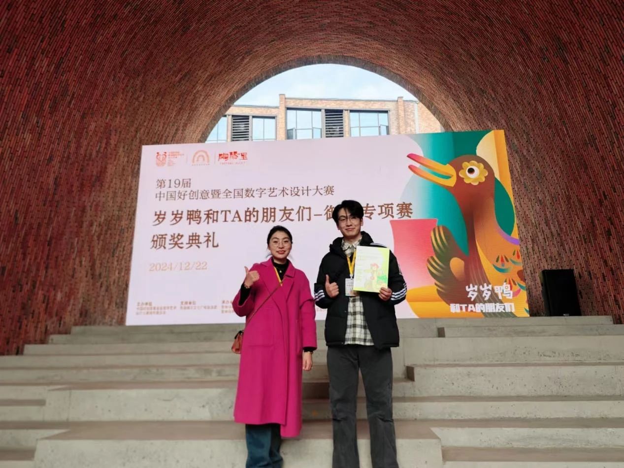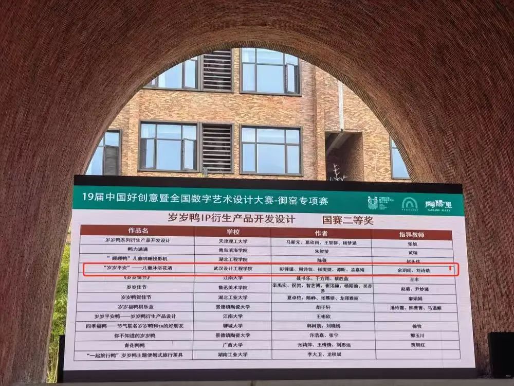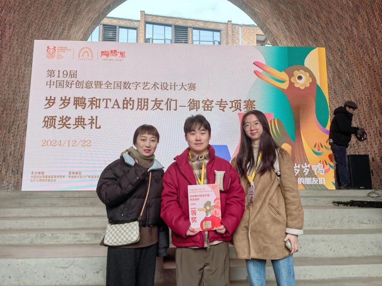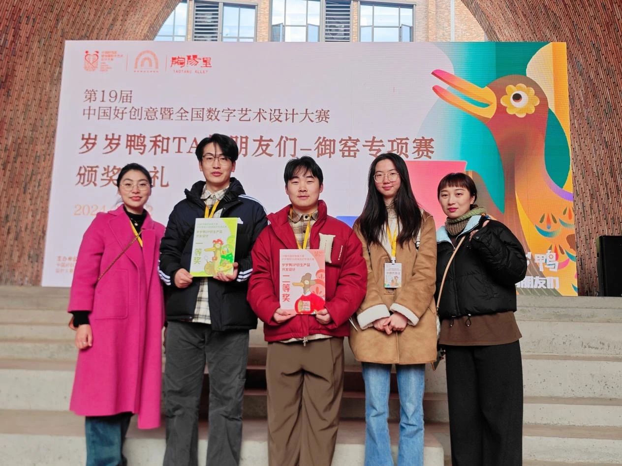在刚刚落幕的第19届中国好创意设计大赛景德镇御窑专项赛中,我院产品设计专业与广告学专业学生在专业教师的悉心指导下,经过层层选拔,最终在岁岁鸭IP衍生产品开发设计类别中取得了国家一等奖和国家二等奖的优异成绩。
