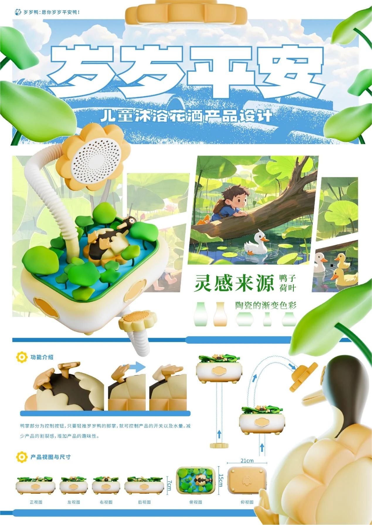 作品名称:岁岁平安-儿童沐浴花洒产品设计