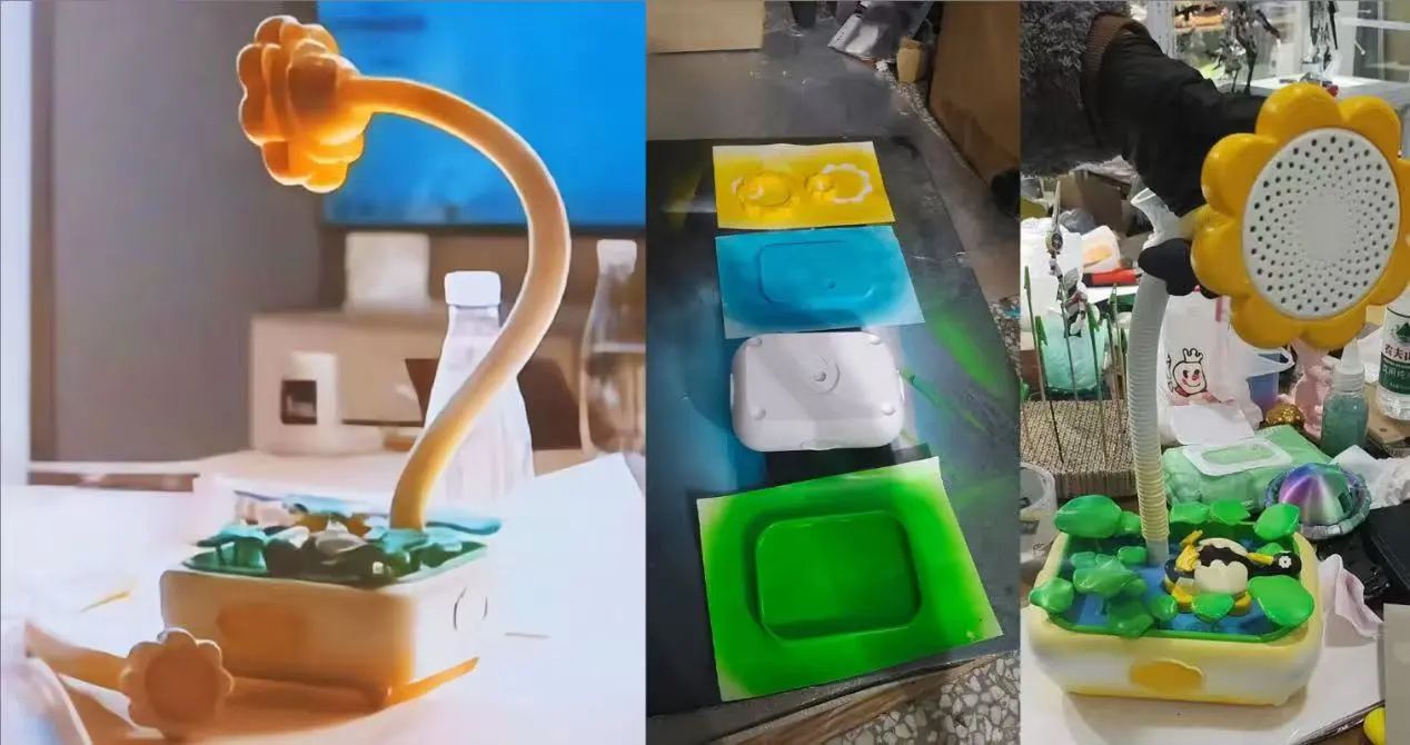 这个作品的实物模型是在我院产品设计系的3D打印实验室精心制作完成,在专业老师的带领下,学生将理论知识与实践技能相结合的。通过3D打印技术,团队能够将创意快速转化为实体模型,进一步优化设计,确保产品的实用性和安全性,同时这一过程加深了学生对产品设计流程的理解。
