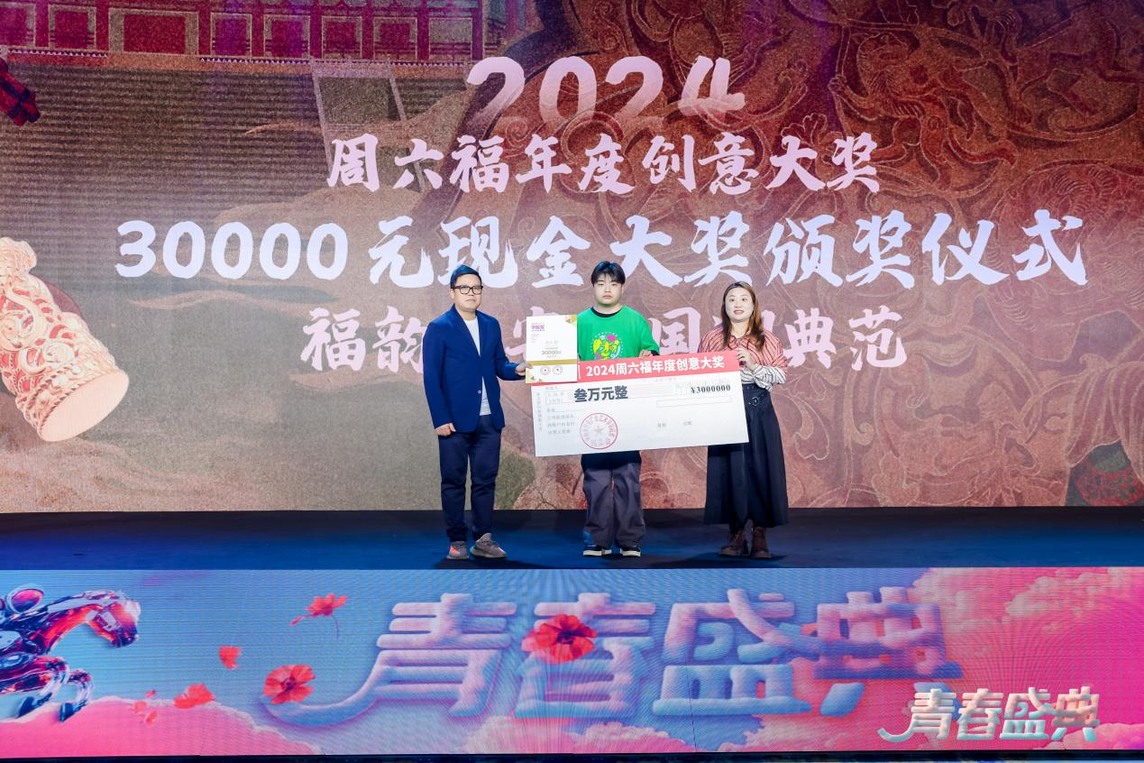 在颁奖典礼上,周六福品牌代表符琦女士宣布了最终的获奖名单,随后,金风帆智库董事长安理先生为学生武泽颁发了周六福年度创意金奖的荣誉。