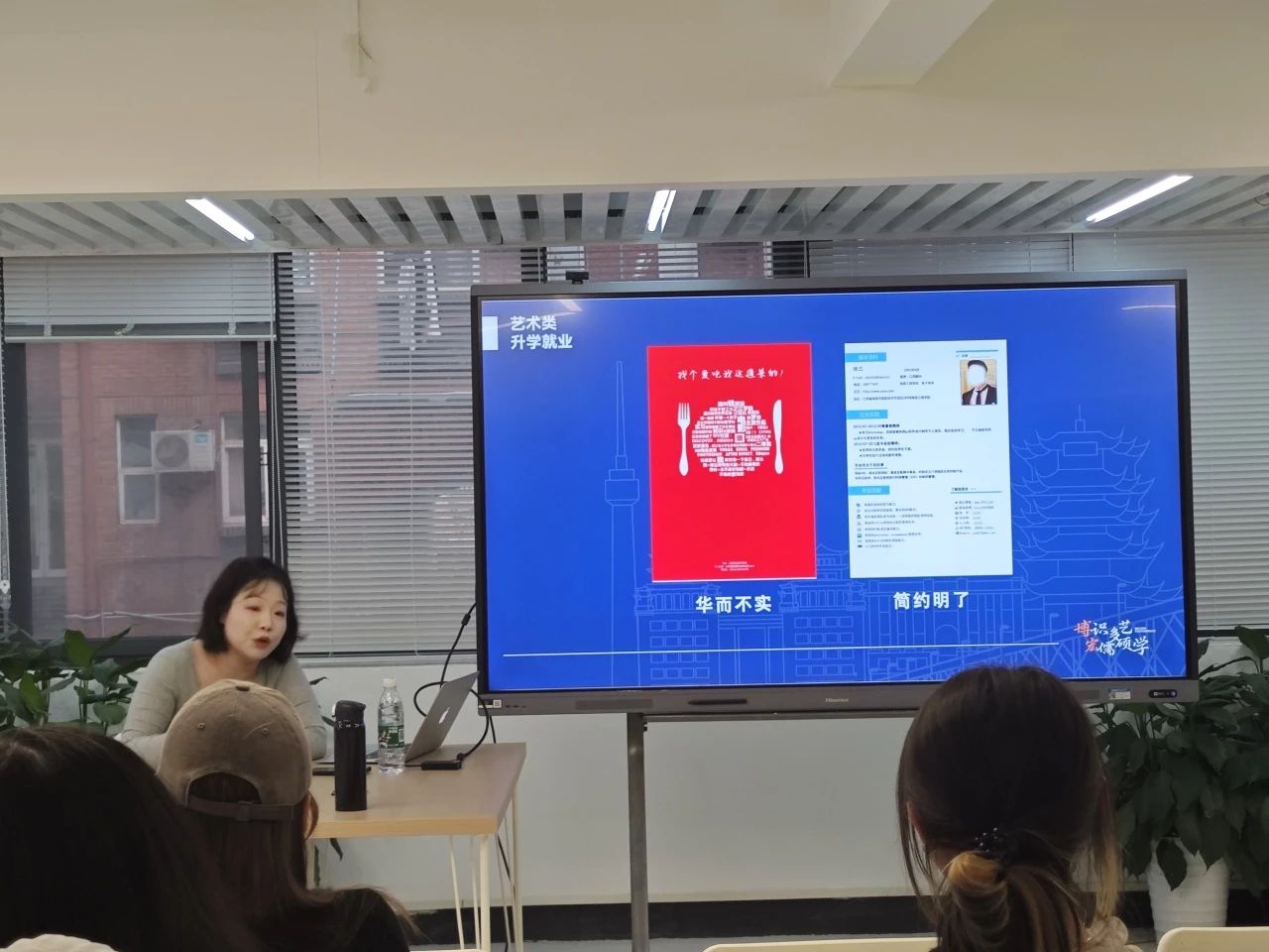 韩学晨老师以其丰富的行业经验和独到的见解,为学生们提供了一场关于艺术类大学生就业的深度指导。讲座内容涵盖了就业市场的分析、简历的编写技巧、面试的准备以及如何提升个人竞争力等多个实用话题。