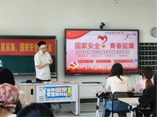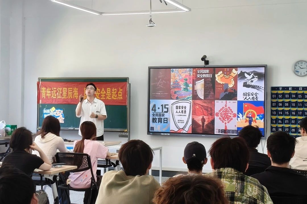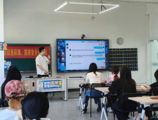 活动伊始,班鑫老师以《国家安全法》为核心,系统阐释了全民国家安全教育日的设立背景与重要意义。通过剖析危害国家安全的典型案例,他强调了当代青年在维护网络安全、数据安全等新兴领域中的责任,并号召师生从日常生活出发,强化“国家安全人人有责”的使命担当。“国家安全不是遥远的概念,而是融入我们每一次理性发声、每一份社会责任的具体行动。”班鑫的发言引发在场师生共鸣。