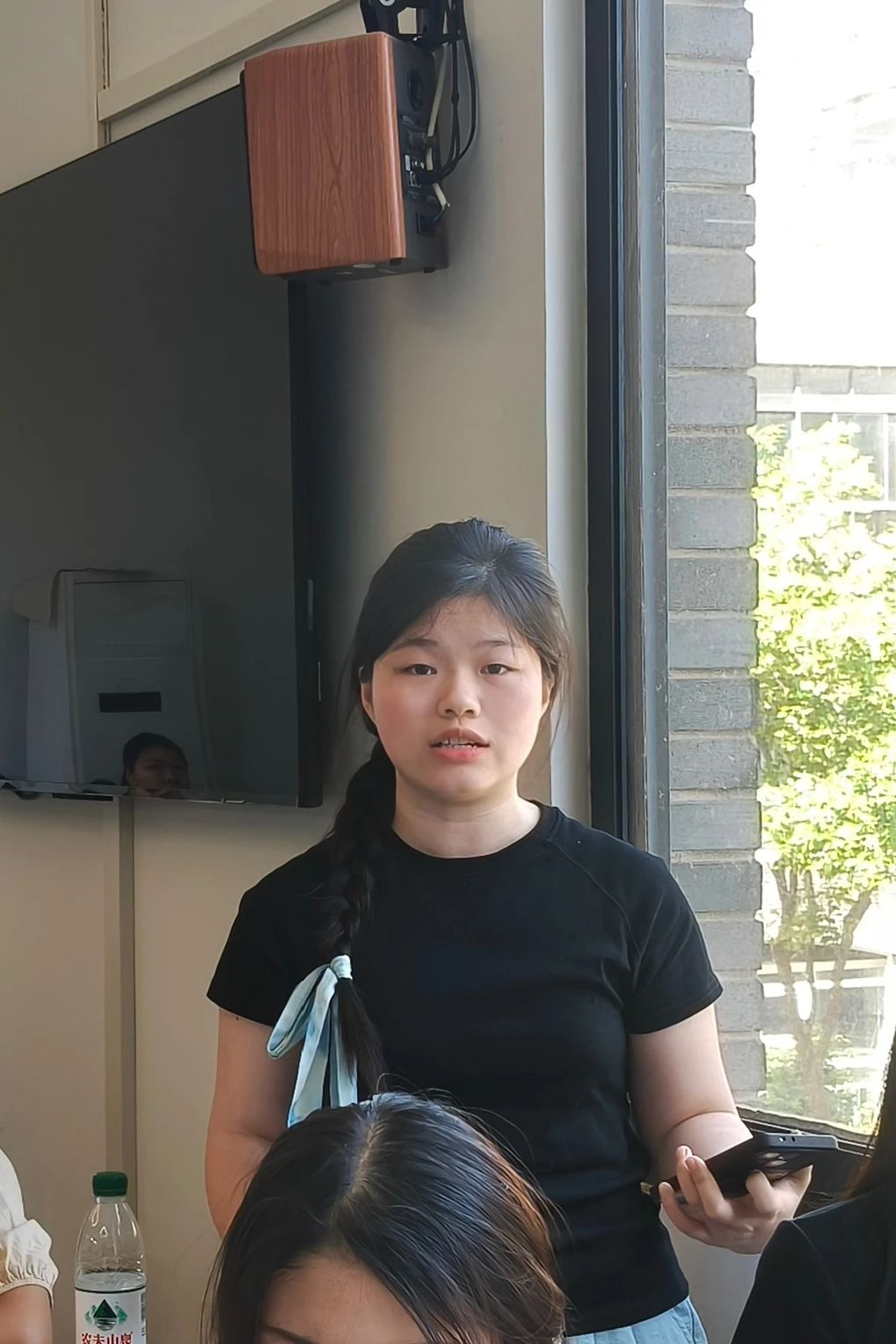 主题海报展示环节,广告2301团支部学生结合专业特色,以视觉语言传递安全理念。在国家安全主题团日活动现场,气氛热烈非凡。三位同学踊跃登台,分享自己精心创作的国家安全主题团日海报背后蕴藏的独特设计理念,同时,他们还满怀热忱地倾诉着在本次主题团日活动中的深刻感悟,真挚之情溢于言表,引发台下阵阵共鸣。