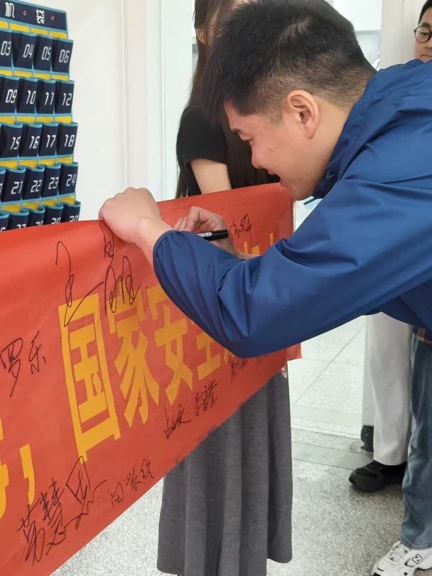 颁奖结束,同学们井然有序地来到横幅前,郑重地签下自己的名字,用笔墨定格这 一难忘瞬间。与此同时,yl6809永利集团党总支副书记何高翔以及学院各辅导员也应邀来到横幅旁,他们面带笑容,挥笔签下名字,为这场活动增添了别样光彩。一时间,现场欢声笑语,气氛热烈非凡,每个人都沉浸在这份喜悦与自豪之中。