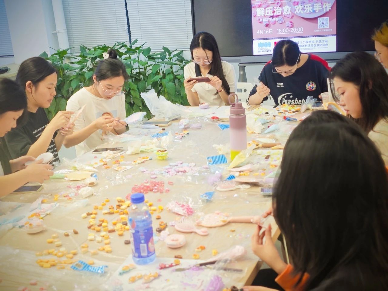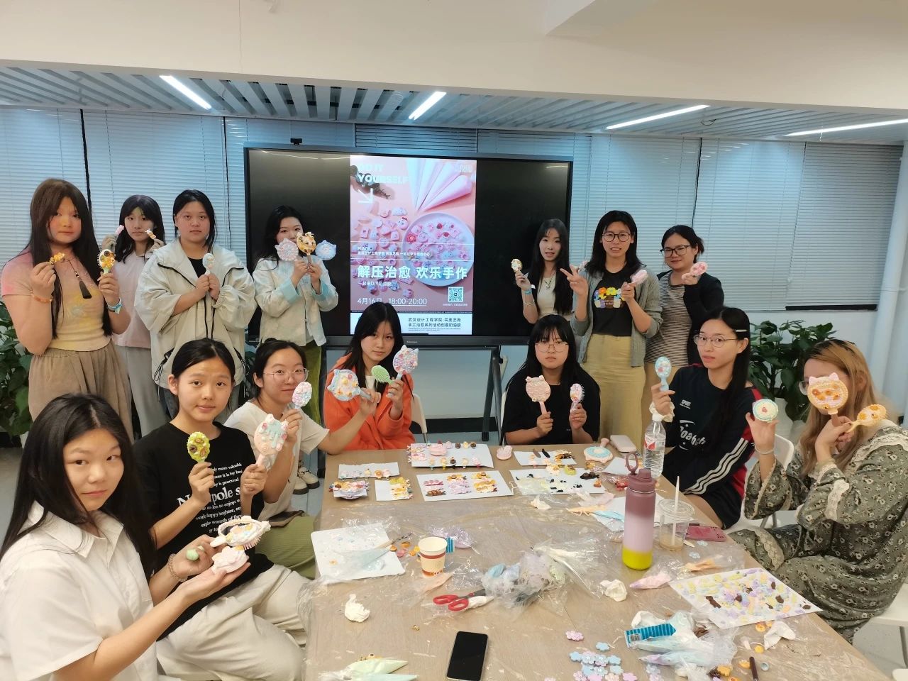 4月16日,yl6809永利YL集团一站式学生服务中心内充满了欢声笑语,由共美艺苑主办的“解压治愈 欢乐手作”奶油胶DIY活动在此成功举办。本次活动吸引了15名手工爱好者参与,共同度过了一个充满创意与乐趣的时光。