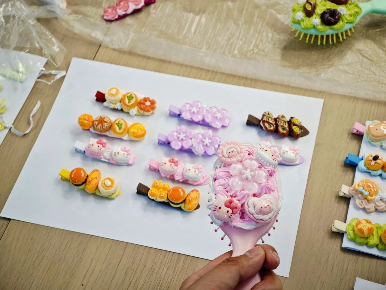 经过两小时的精心制作,一件件充满个性的奶油胶作品诞生了。有的学生制作了装饰着Hello Kitty的可爱发夹,有的则创作了点缀着小花朵的手机壳。每一件作品都凝聚了学生们的创意和心血,展现了他们独特的审美和手工技艺。