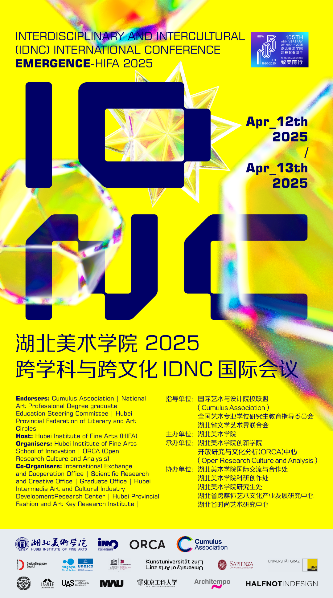 2025年4月12日,一场聚焦艺术教育发展前沿的盛会——湖北美术学院2025“跨学科与跨文化(IDNC)”国际会议在武汉盛大开幕。此次会议规格之高、参与范围之广令人瞩目,来自全球10个国家、30余位协会、高校、行业专家学者,以及全国设计专业学位研究生教育指导委员会的代表纷纷汇聚于此。