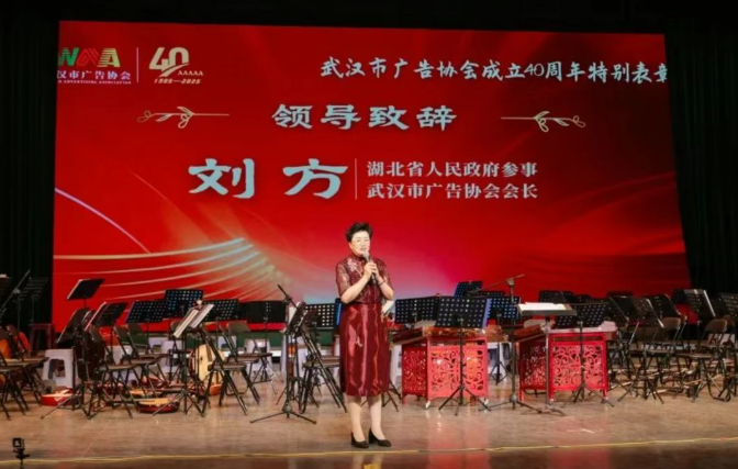庆典伊始,湖北省人民政府参事、武汉市广告协会会长刘方登台致辞。刘会长深情回顾,四十载风雨兼程,既是全体武汉广告人携手拼搏的奋斗史诗,亦是一部见证行业锐意革新、蓬勃向上的发展史。展望未来,刘会长坚定表示,武汉市广告协会将永葆进取之志,团结全体会员企业,以踔厉奋发之姿、矢志不渝之态,勇担行业使命,奋力擘画新时代广告产业高质量发展的崭新蓝图。