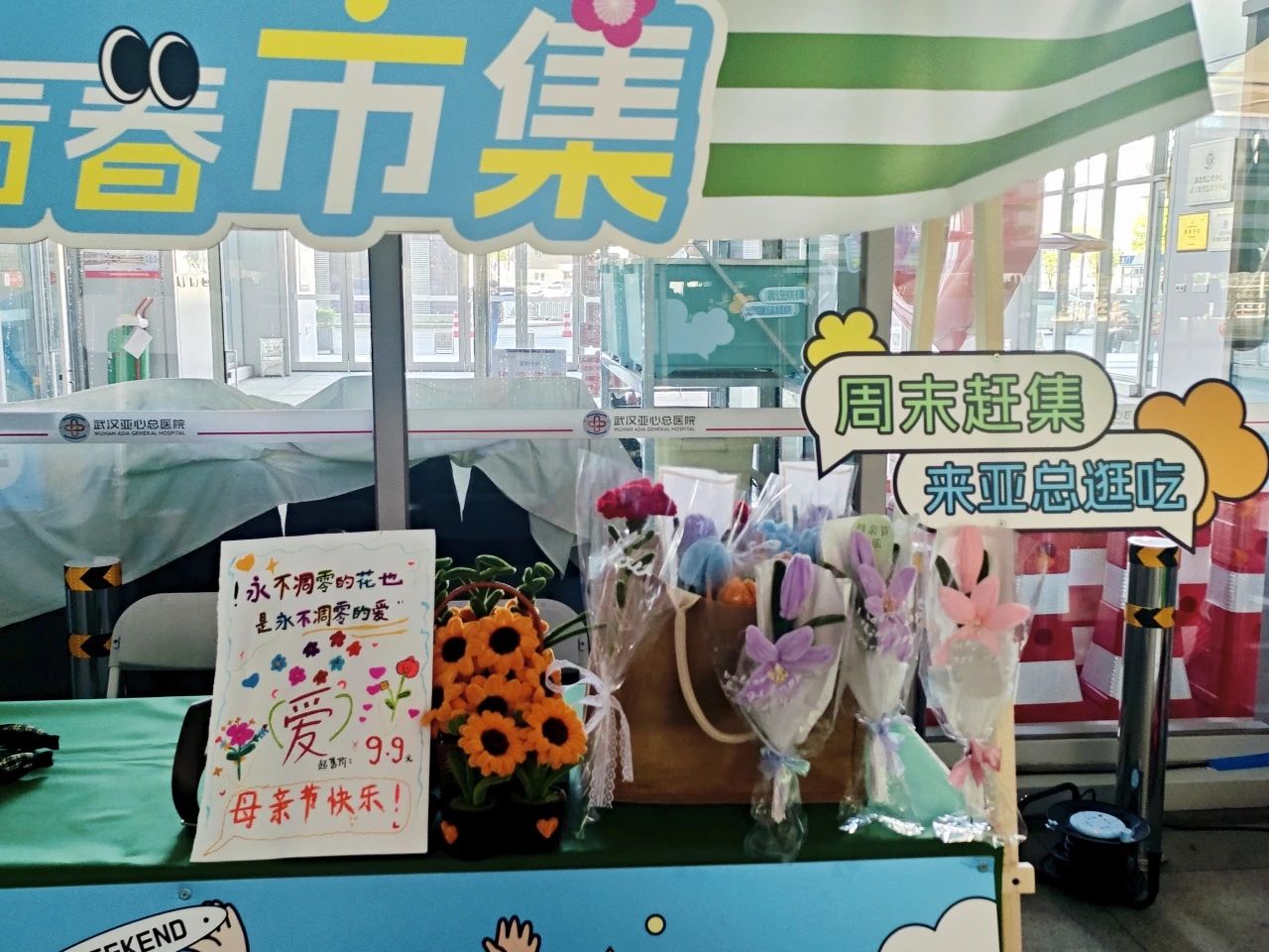 2025年5月11日,在这个充满温馨与感恩的母亲节,在武汉亚心总医院的“创益亚总,青春市集”活动中,yl6809永利集团学生在亚总医院一楼小小的摊位中演绎了一场关于爱与美的故事。