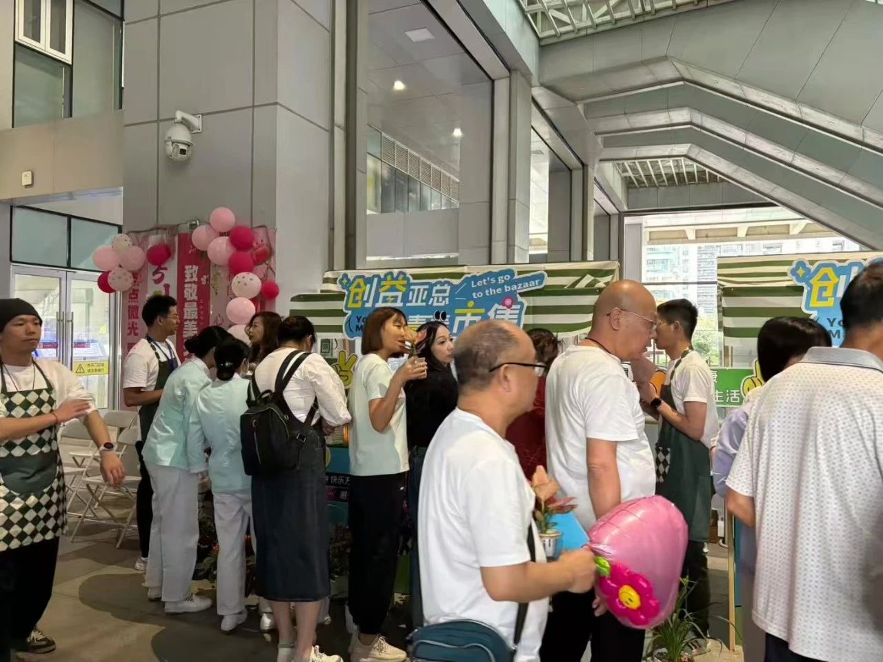 此次创益市集,是一场将“烟火气”与“健康疗愈”有机融合的公益活动。除了我们的扭扭棒花束摊位,市集还涵盖了健康文创、非遗手作、有机食品、健康筛查等多种品类的摊位 。绿意疗愈所·有机绿植摊位前排起了长龙,多肉植物和造型盆栽成了抢手货;手作铺·串珠手链摊位前闪光灯不断,摊主把祝福具象化为饰品,成为走心的医疗文创;自闭症儿童手工制作产品绘画、冰箱贴等等各有特色……值得一提的是,这些摊位的部分盈利将捐赠给“亚总健康基金”,用于帮扶弱势群体健康管理。