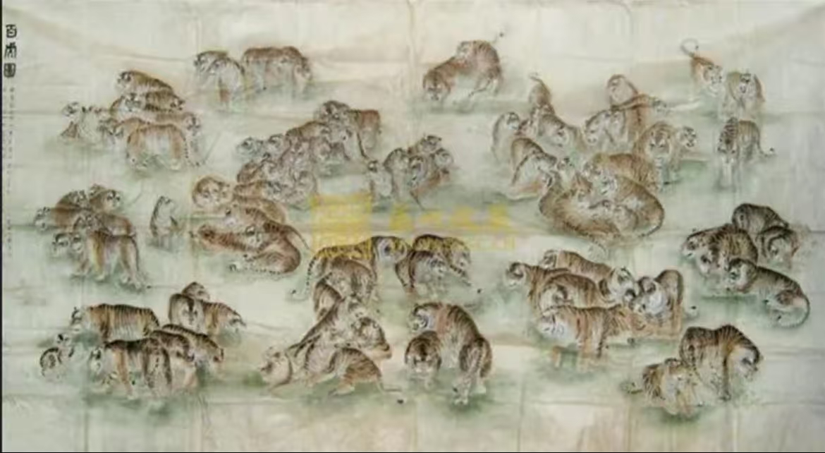 走进红巷美术馆,团队被馆藏的《百虎图》长卷深深吸引。这幅创作于清末的10米长卷,用不同笔法描绘了100只形态各异的老虎。“画家用‘劈笔丝毛’表现幼虎的柔软,用‘钉头鼠尾描’勾勒猛虎的筋骨。”团队成员胡圆圆在临摹时特别注意这些细节。更令人惊喜的是,他们在整理资料时发现,传统布老虎的造型竟与某些写意虎画中的夸张变形手法高度吻合。