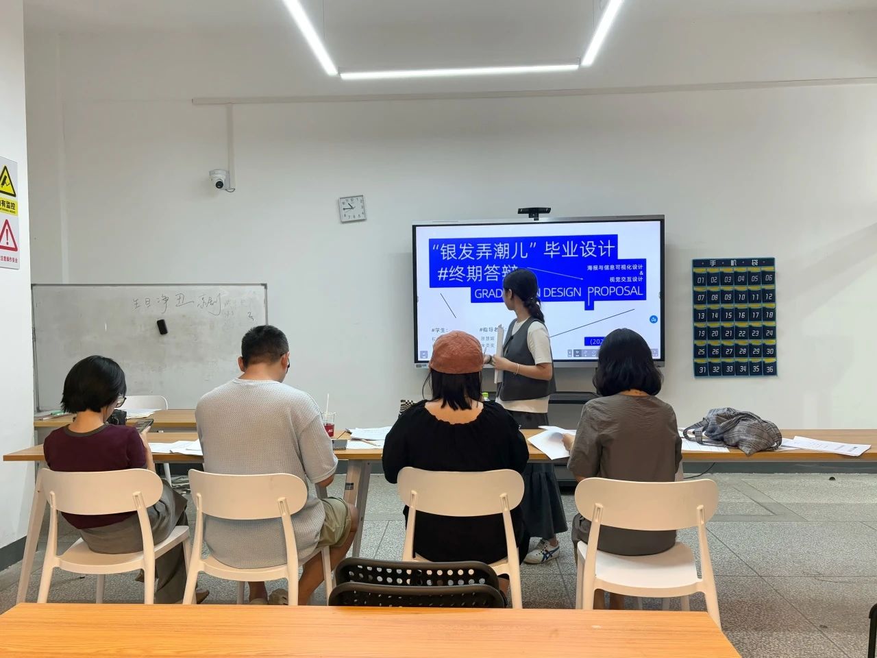 2025届视觉设计系毕业生于2025年5月21日(周三)上午9:00在荃3楼3029—3069进行毕业答辩,每组学生分批次到达教室参与答辩,答辩过程中答辩小组按照顺序依次上台,通过视频、图片、ppt、毕业设计展板以及文创实物等展示方式,向在场的答辩评委老师们进行讲解与成果展示。