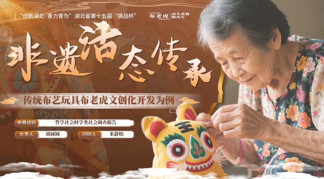 此项目以“活化非遗”为使命,团队两年期间走访湖北、山西、江苏等四个城市,通过问卷调查法,访问法、资料查找法和实地调研法进行研究,收集有效问卷5000余份。在参赛期间,团队持续打磨作品文稿与PPT、完善调研路径,并精心制作了布老虎模型及相关物料。这些努力都源于一个核心理念:想让非遗保护不再是博物馆式的封存,而是真正面向未来,焕发新的生机。
