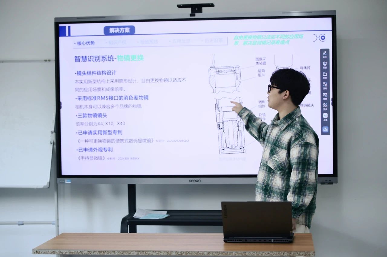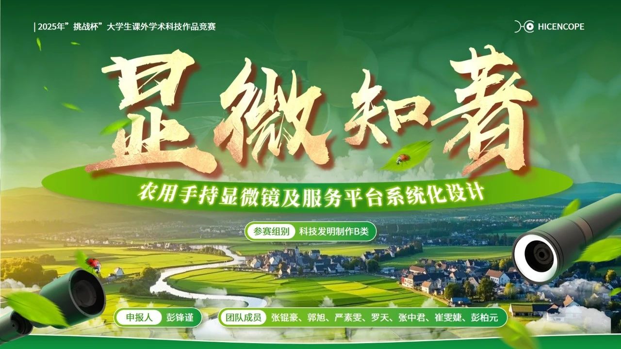 此项目以“HICENCOPE手持显微镜”为基点,深入田间地头,探索科技助农新路径。 HICENCOPE手持显微镜,是我院跨学科团队研发的创新成果。可实时采集作物微观数据,上传平台进行精准分析病虫害类型。配套开发的APP及服务平台形成了“检测—诊断—防治”一体化闭环。
