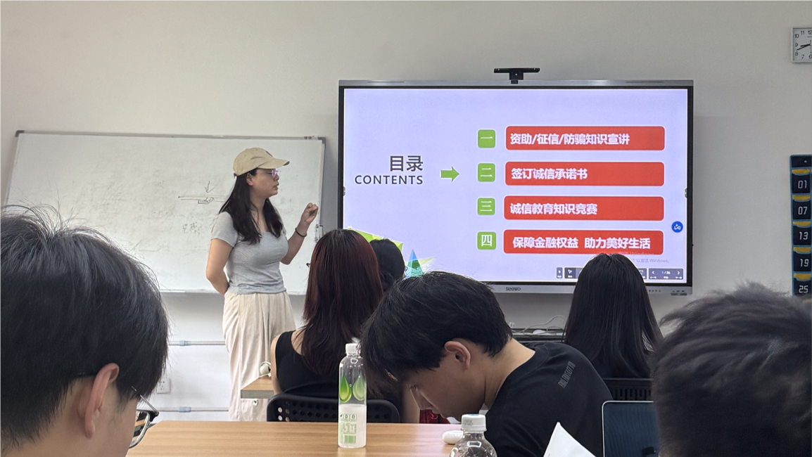 各班开展“诚信之约”主题班会,涵盖征信视频播放、普及金融知识、反洗钱宣传等环节,并结合典型案例,深入剖析资助领域失信行为的危害,引导同学们将诚信意识化为自觉行动,以诚信品质守护资助公平。