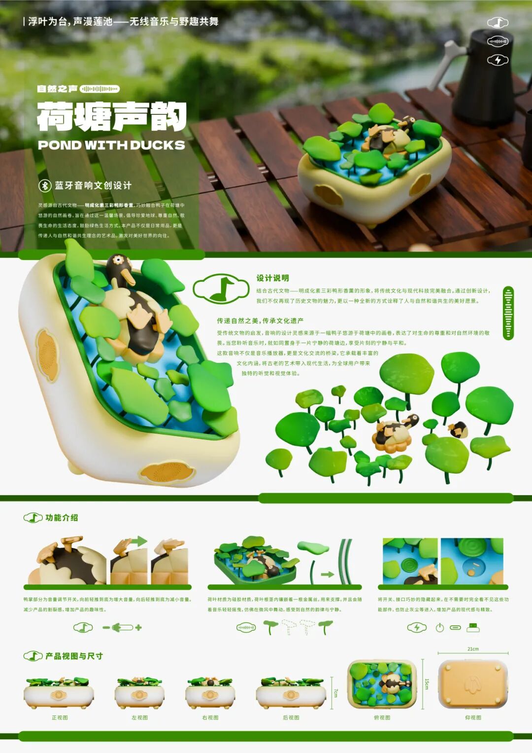 传递自然之美,传承文化遗产:受传统文物的启发,音响的设计灵感于一幅鸭子悠游于荷塘中的画卷,表达了对生命的尊素和对自然环境的敬畏。当您聆听音乐时,就如同岩身于一片宁静的荷塘边,享受片刻的宁静与平和。这部音响不仅是音乐播放释,更是文化交流的桥梁,它承载着丰富的文化内涵,将古老的艺术带入现代生活,为全球用户带来独特的听觉和视觉体验。