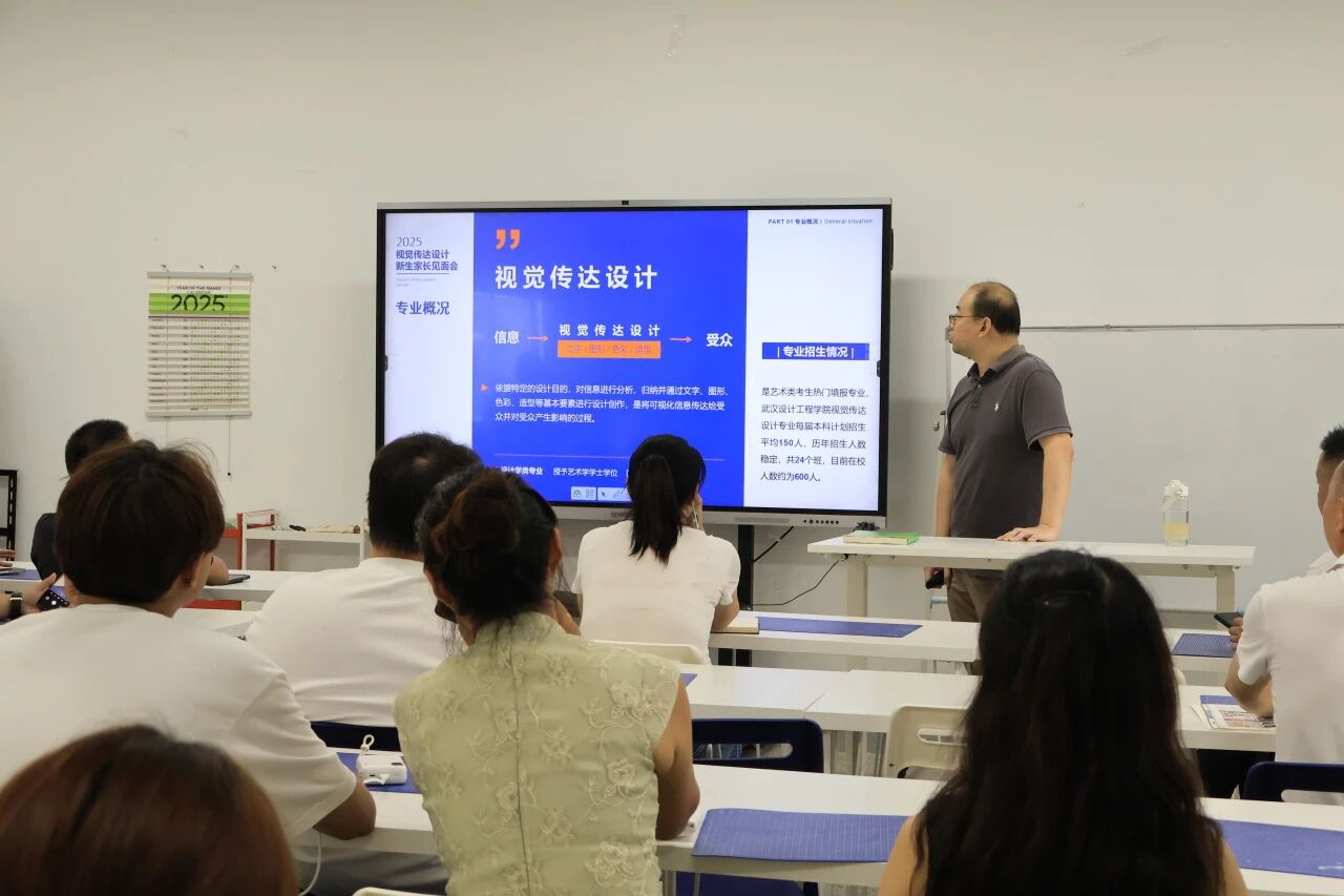 本次见面会由视觉传达设计专业郑璇老师、产品设计专业徐畅老师、网络与新媒体专业郑雨雪老师、工艺美术专业陈翔宇老师、公共艺术专业汪甜老师担任各专业家长见面会主讲。