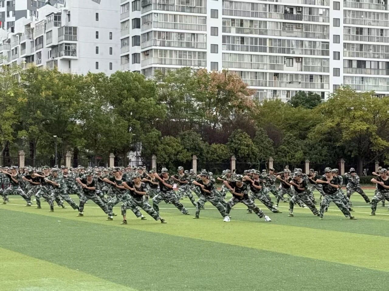 站军姿是每日的必修课。汗水浸透衣衫,阳光晒黑皮肤,但从东倒西歪到纹丝不动,挺拔的身姿里藏着不服输的韧劲。踢正步的训练场格外热闹,“一二一”的口号此起彼伏,从步伐凌乱到整齐划一,是反复练习后集体的默契。战术训练中,他们俯身匍匐、快速跃进,尘土沾满脸庞,眼神却愈发锐利明亮。