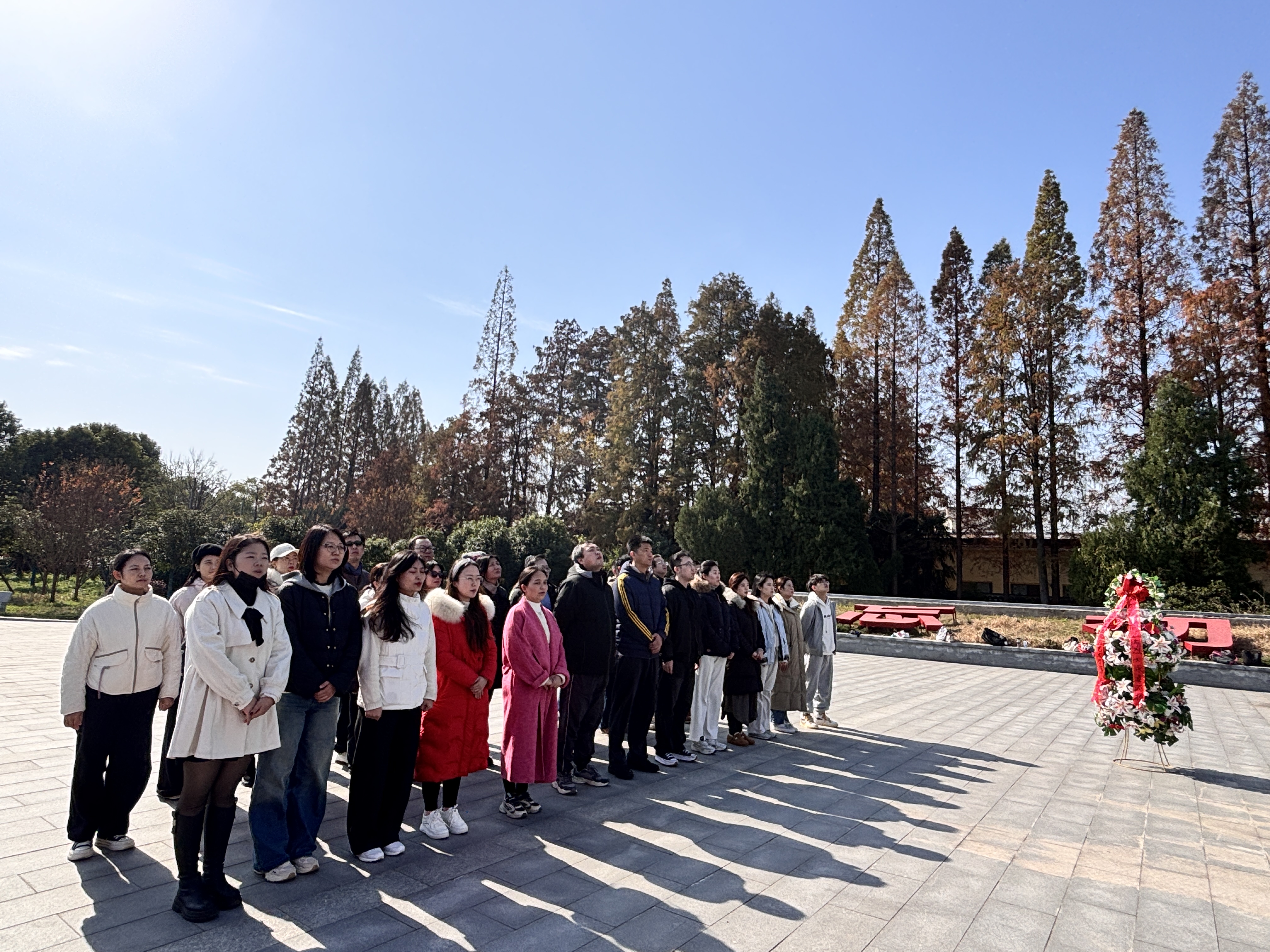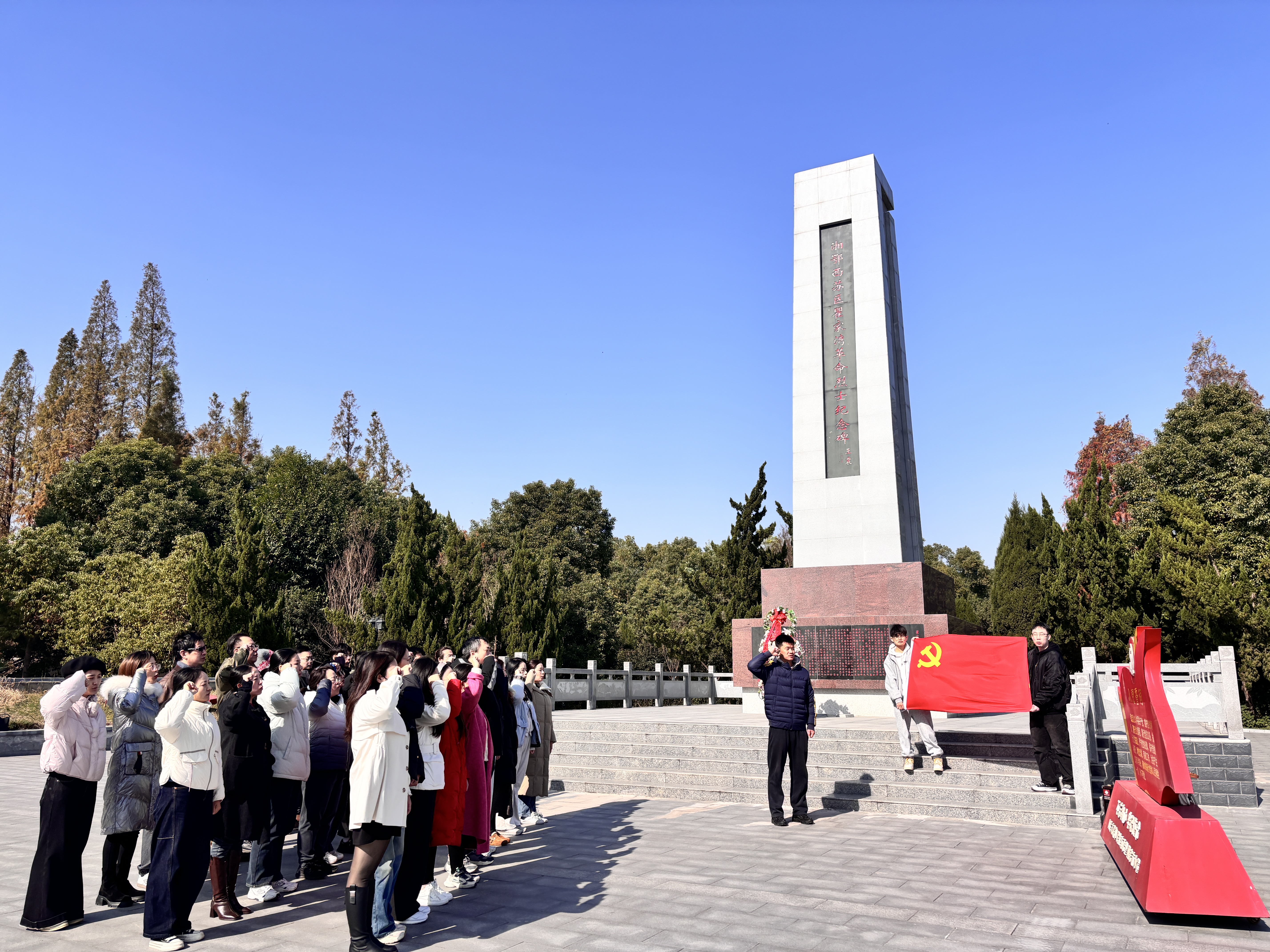 冬日的洪湖肃穆而宁静,瞿家湾革命烈士纪念碑巍然矗立。在庄严肃穆的氛围中,党总支副书记何高翔、副院长陆超代表学院向长眠于此的革命先烈敬献花篮,全体人员静默肃立,深切缅怀为民族独立和人民解放事业英勇献身的革命先驱。随后,在何高翔副书记的带领下,全体党员面向党旗,高举右拳,重温入党誓词。铿锵有力的誓言回荡在纪念碑前,表达了同志们不忘初心、牢记使命,为党的教育事业不懈奋斗的坚定决心。
