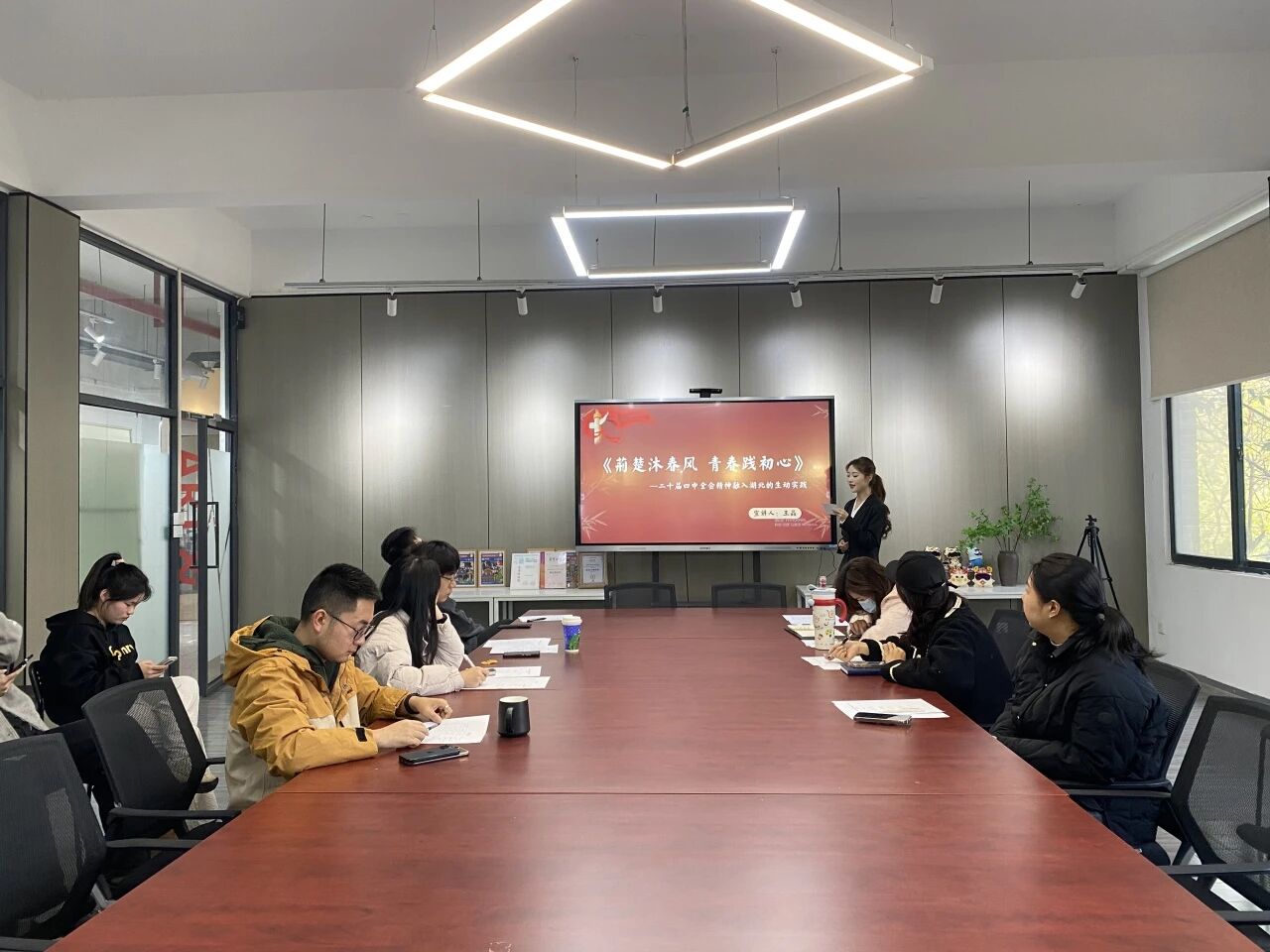 本次院赛严格遵循评分标准,从内容准确性、主题契合度、形式创新性、表达感染力和整体风貌五个维度对选手表现进行综合评判。选手们不仅在内容上准确解读全会核心要义,更在形式上大胆创新:有的融入 PPT 可视化设计,用专业技能让理论 “看得见、读得懂”;有的结合实践经历现场分享,让宣讲更具代入感。