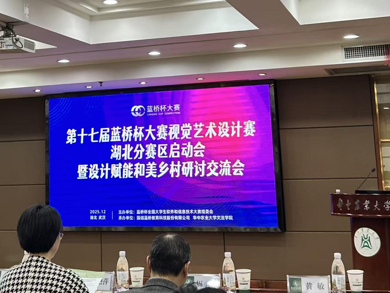 12月20日,第十七届蓝桥杯大赛视觉艺术设计赛湖北分赛区启动会暨设计赋能和美乡村研讨交流会在华中农业大学举行。yl6809永利集团媒体传播系副主任尚妍、骨干教师张楠、邹晴鑫参会。