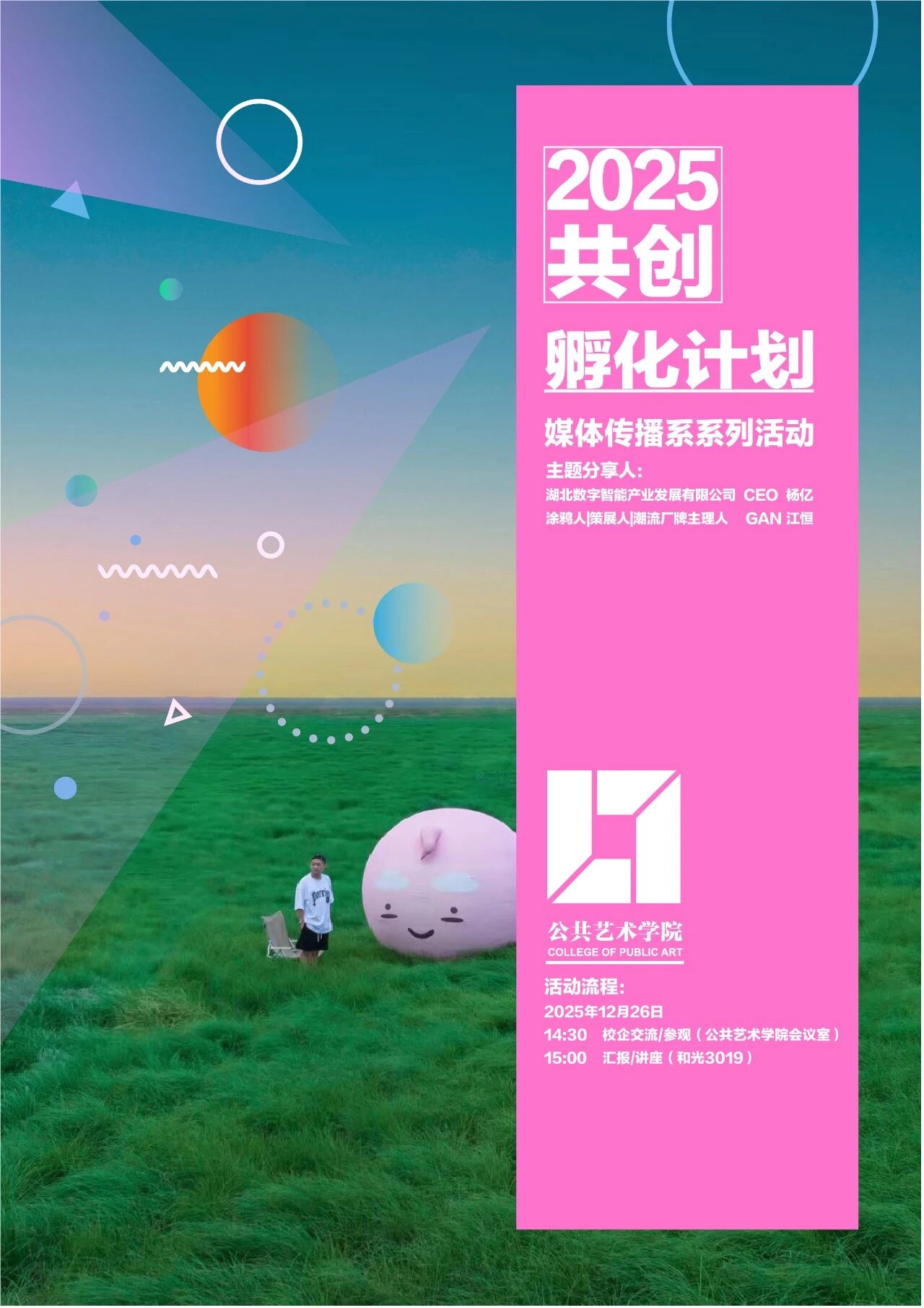 数字智能正在重塑广告行业的每一个环节,与此同时,潮流艺术的表达边界也在不断拓宽,IP“一毛一漾”闪现武汉大街小巷。当算法与灵感相遇,当数据与色彩交织,将碰撞出怎样的火花?本次活动将呈现一场数字智能与潮流艺术的交叉对话,我们诚邀广大师生共同探索数字变化与IP创新,把握时代脉搏。
