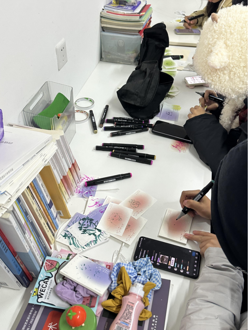 十二月的风裹着寒意撞在窗棂上,共美艺苑(C8寝室楼)的自习室里,却藏着一方能接住所有情绪的温柔角落。12月24日下午五点,「解忧调色盘」活动正式启幕,我们拿起画笔,让那些说不出口的心事、藏在心底的情绪,都在纸间晕染成独属于自己的色彩。