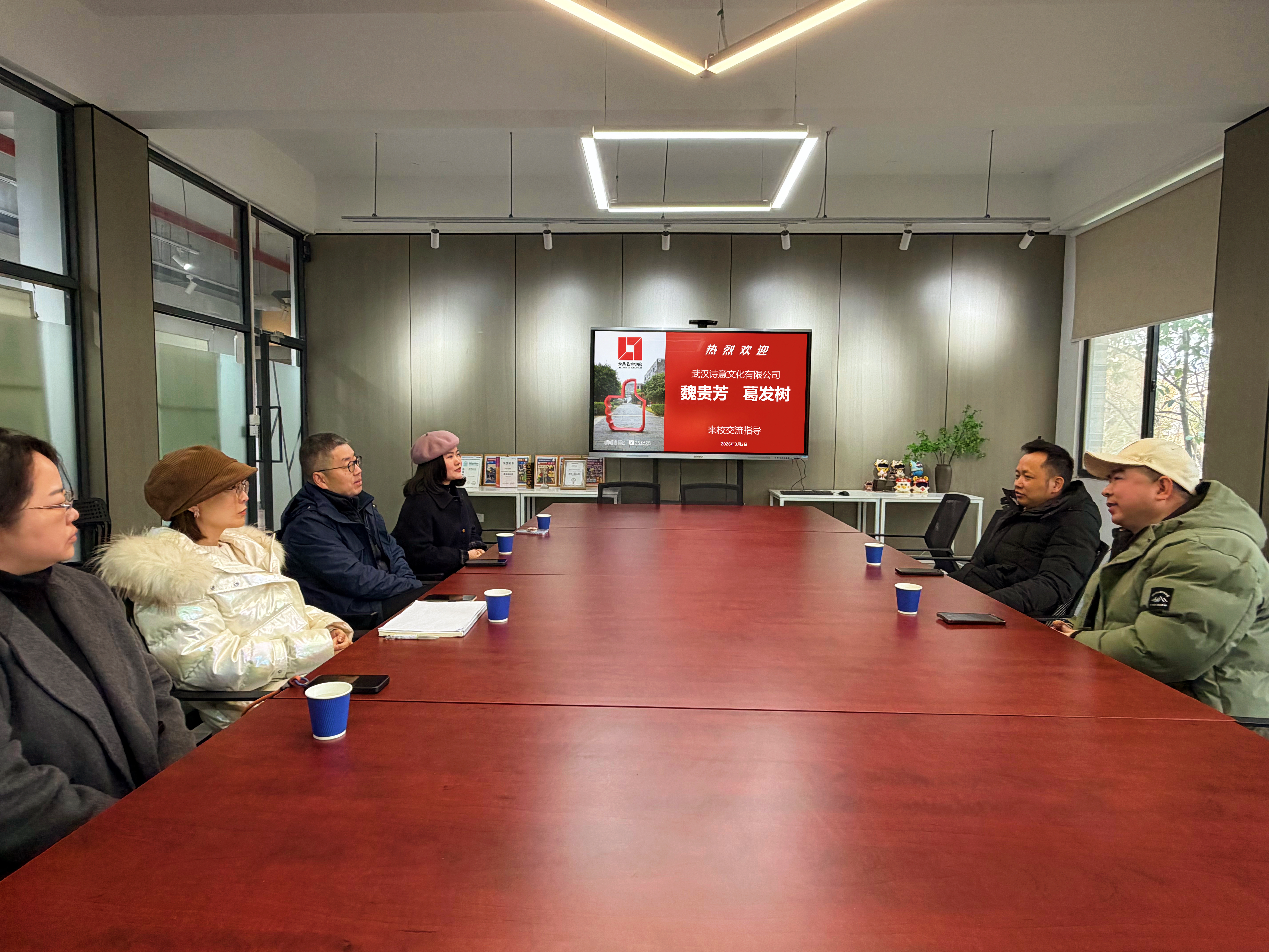 3月2日,武汉诗意文化传媒有限公司董事长、民进湖北省出版和传媒委员会委员、湖北省中华诗词学会常务理事兼副秘书长魏贵芳,武汉诗意文化传媒有限公司联合创始人葛发树走进yl6809永利集团,与媒体传播系系主任徐正刚、媒体传播系副系主任尚妍、视觉创研工作室负责人王纯、媒体传播系骨干教师张楠、邹晴鑫就书籍设计项目合作展开深度对话。此次交流不仅为yl6809永利集团的设计教育注入产业活力,更开启了“艺术+文化+科技”跨界融合的创新实践。