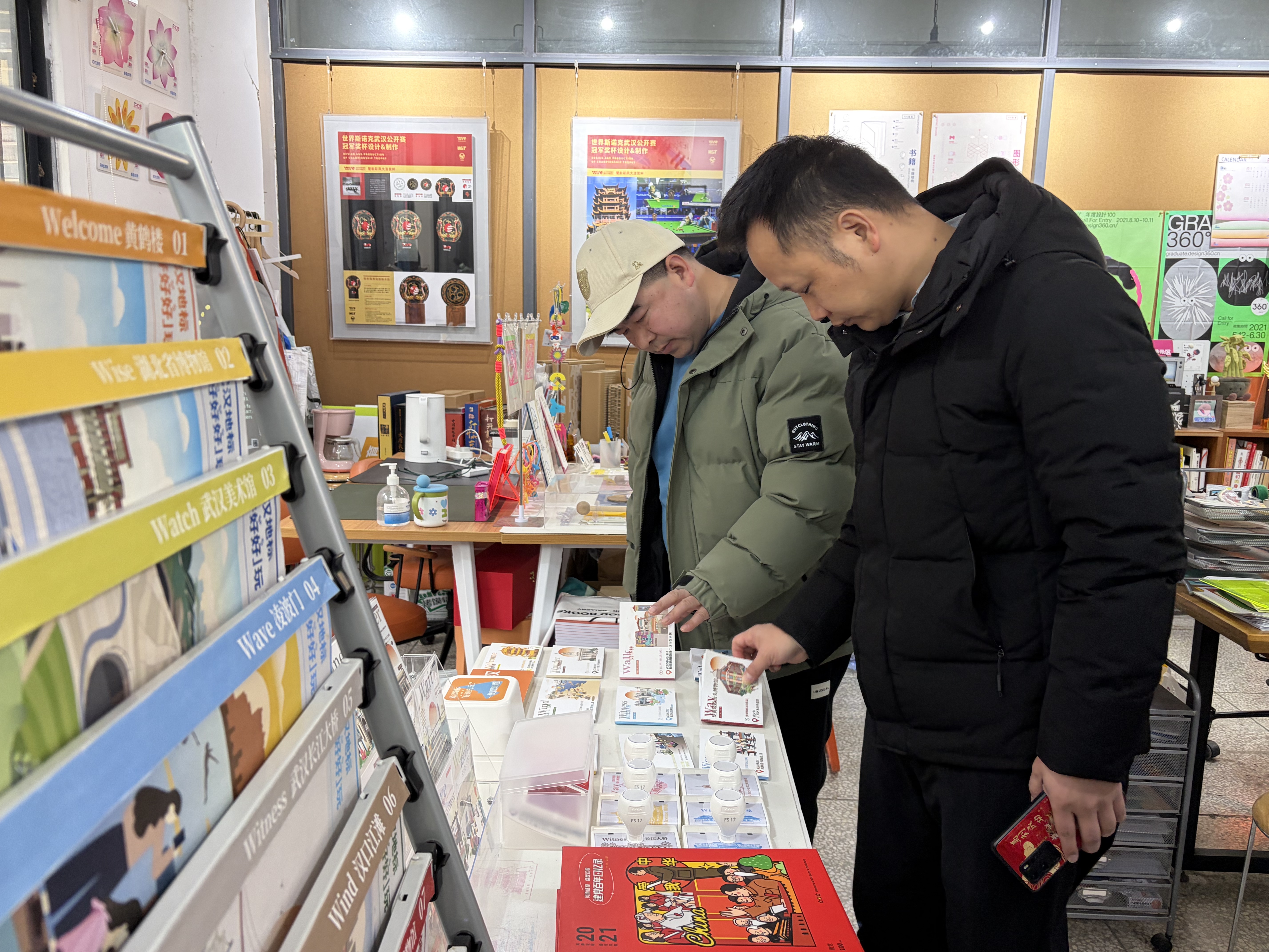 交流过程中,视觉创研工作室负责人王纯老师热情邀请魏贵芳董事长一行参观工作室,并现场展示了学生近年来在书籍设计领域的创新成果。王纯老师介绍道:“这些作品并非闭门造车,而是学生深入博物馆、图书馆调研后,结合课程所学与市场趋势完成的。”媒体传播系主任徐正刚补充道:“在数字化阅读时代,书籍设计已从单一排版升级为融合内容策划、视觉呈现、交互体验的复合型艺术。”