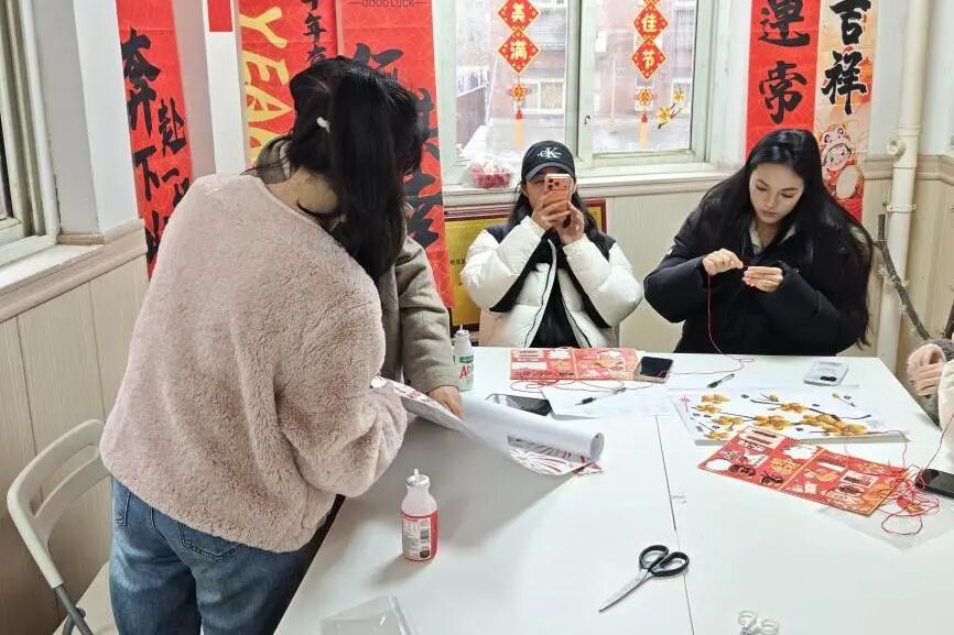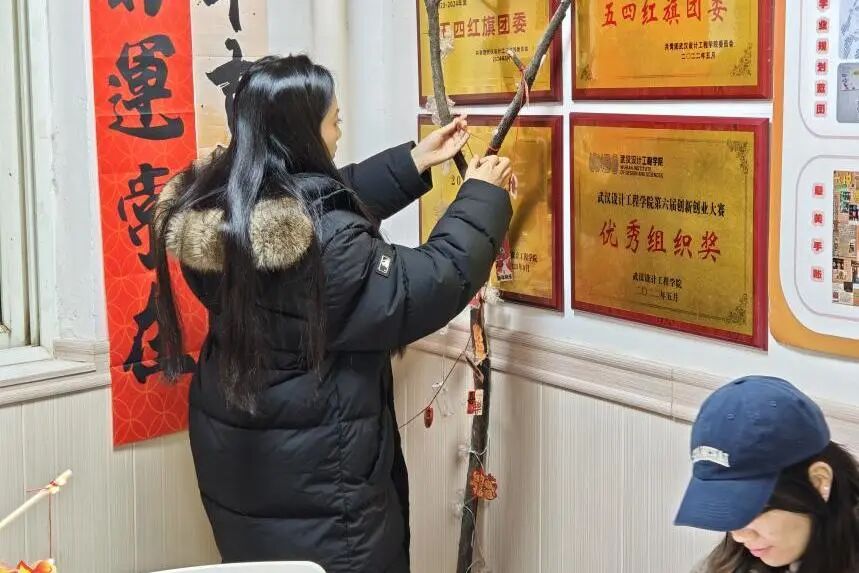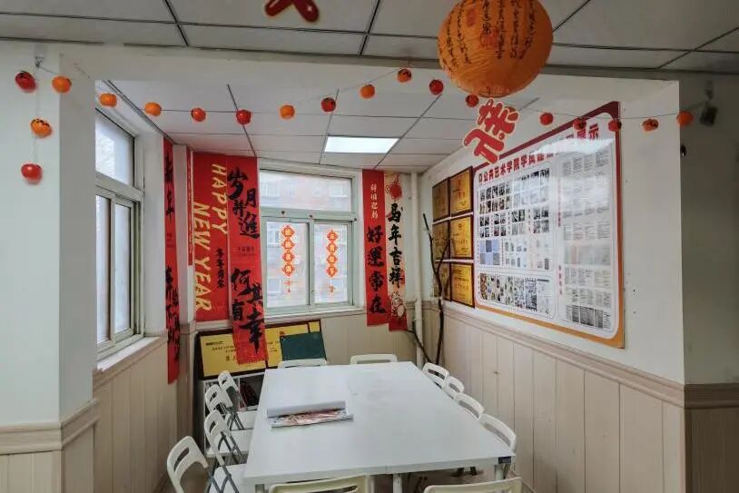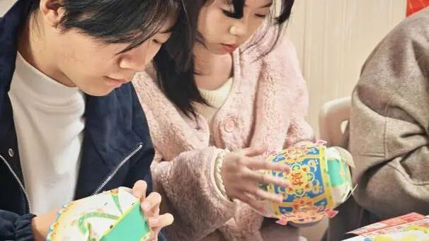 在氛围装饰环节,现场准备了烟花、福字、马年吉祥等主题贴纸,师生们自由创作、随心粘贴,将“团圆圆满”的美好寓意,定格在活动现场的每一个角落。原本温馨的共美艺苑,在大家的装点下更添几分元宵佳节的喜庆与暖意。