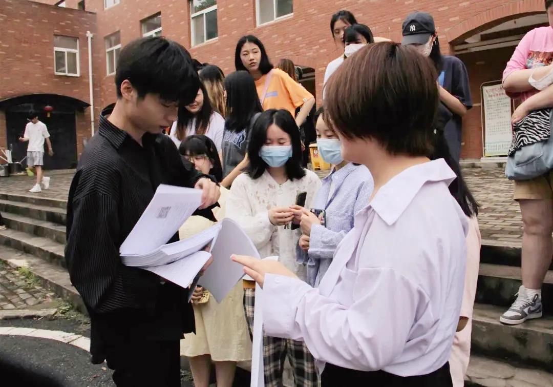 学生党员向学生发放防诈骗宣传资料。 王美惠 摄