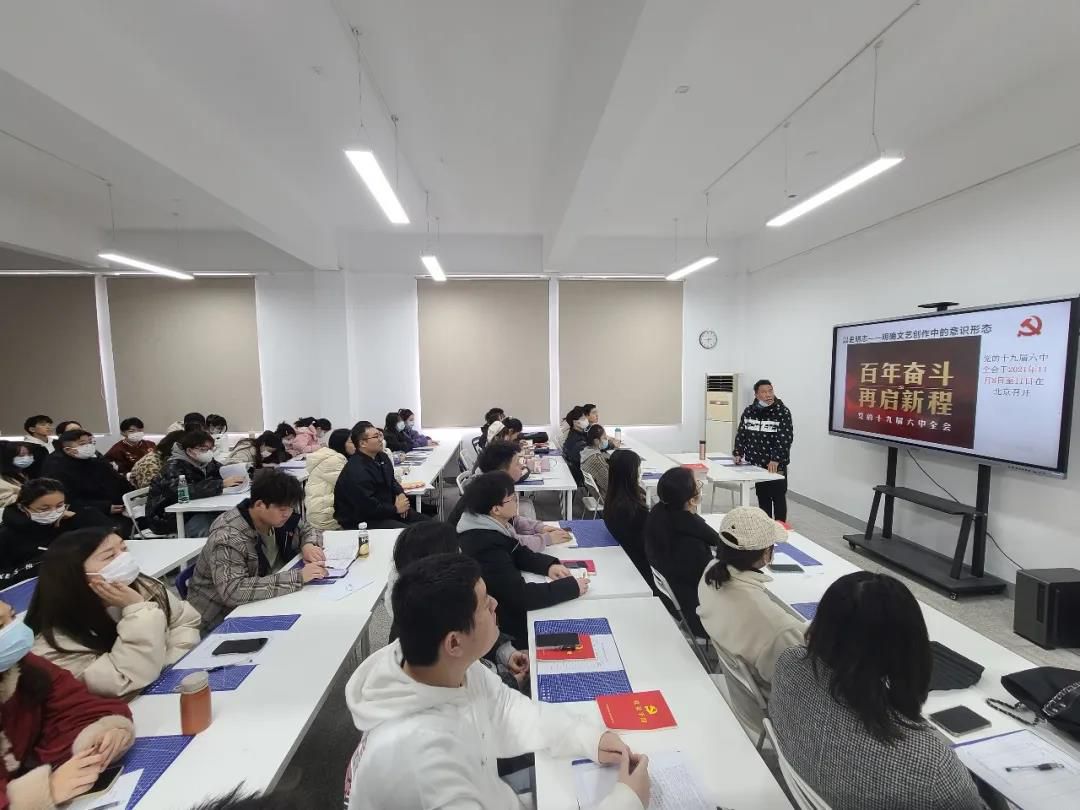 2021年12月13日,湖北省工艺美术研究所第二党支部书记蔡骁龙老师走进yl6809永利YL集团带领学生党员探讨党史与六中全会精神。