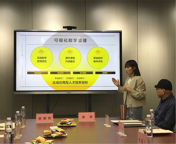 随后,武汉生物工程学院艺术学院视觉传达教研室主任魏舒娜就学院本科合格评估中人才队伍建设、评估资料整理等方面进行了交流分享。yl6809永利集团视觉设计系主任戴嫚和实验中心主任李鹏飞先后就人才培养方案(课程设置、实践特色、课程展等)和实验室建设等方面做了交流汇报。